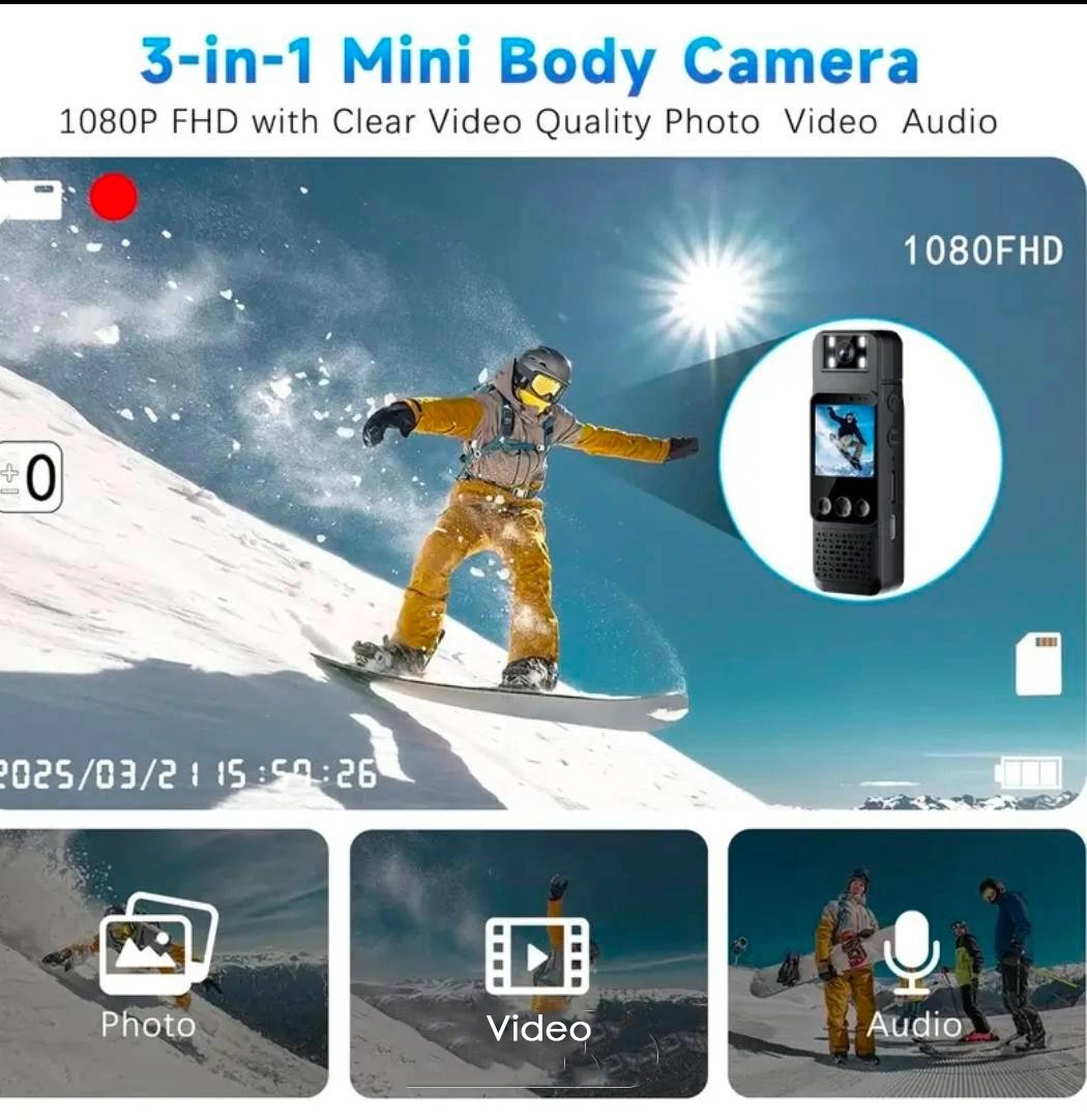 دوربین بدنه 1080P با ضبط صدا و تصویر، لنز چرخشی 180 درجه، باتری 1000 میلیآمپر ساعتی (6 ساعت کارکرد)، 4 عدد چراغ دید در شب، جذب مغناطیسی پشت - ایدهآل برای شهروندان عادی، ورزشکاران ، ضبط جلسات و جمعآوری شواهد