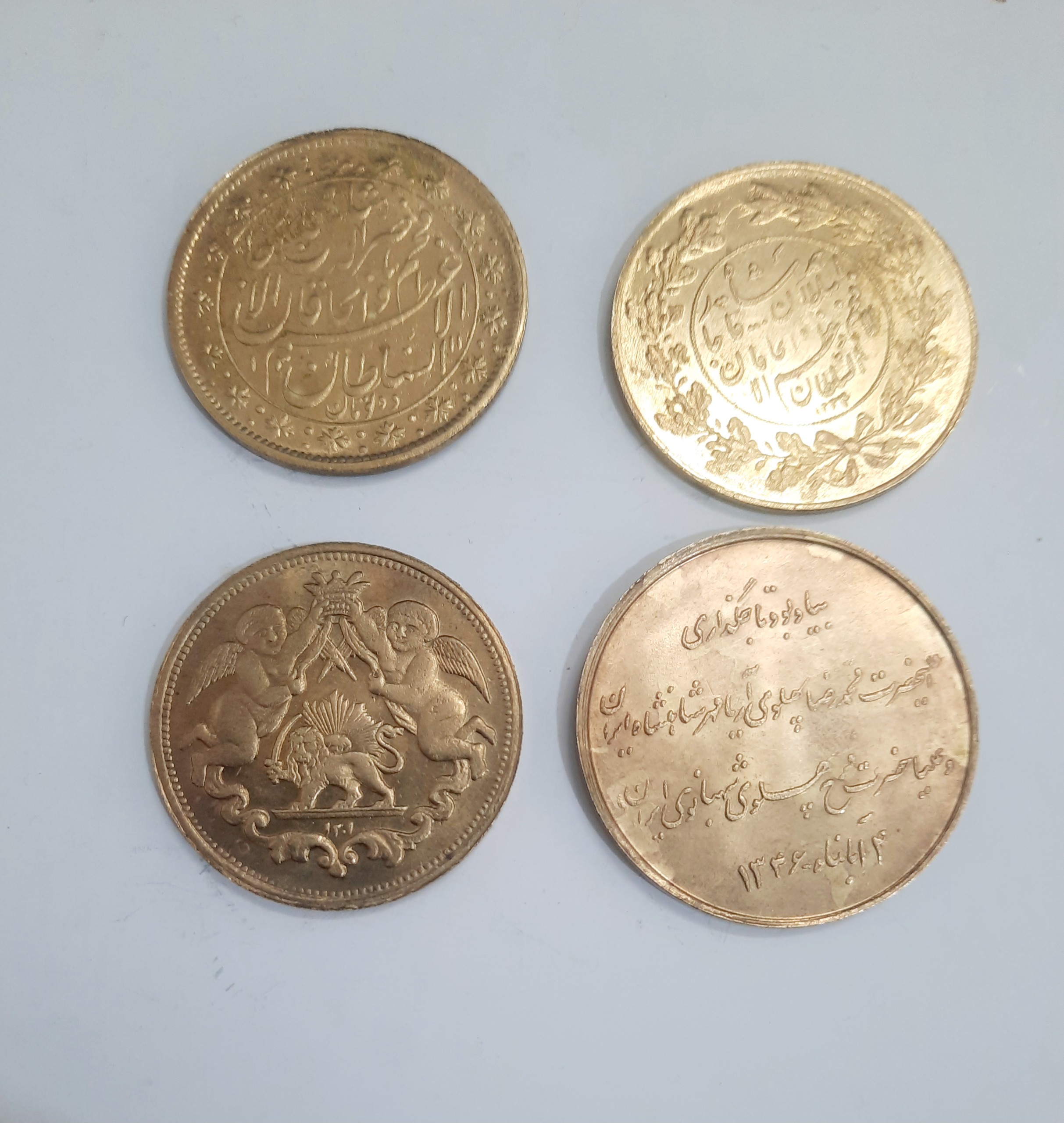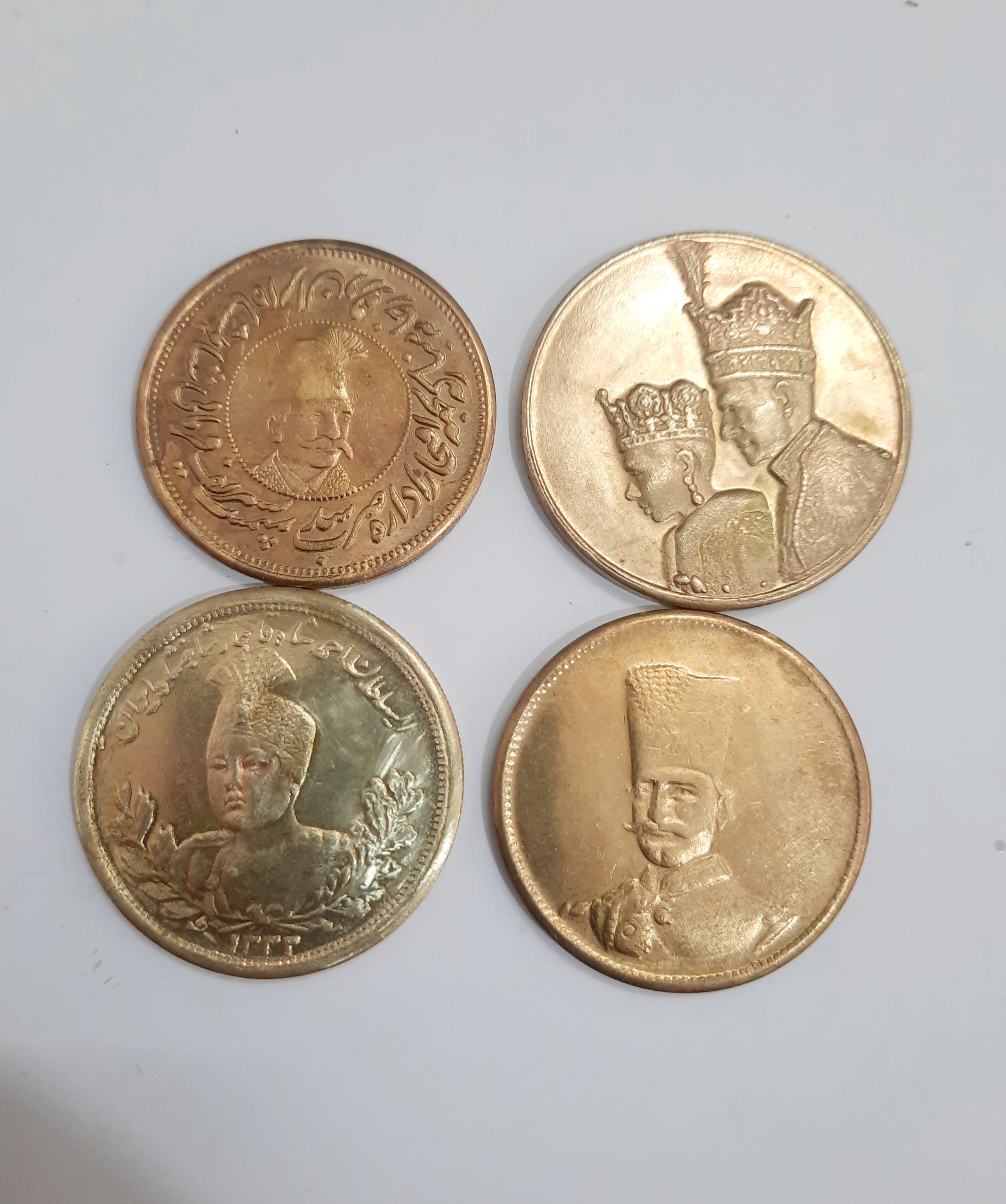 4 عدد مدال برنجی زمان قاجار و پهلوی،جزو اولین مدالهای بدل از سال 1391 هستند،کاملا نو هستند ممکنه داخل عکس جالب نیفتاده