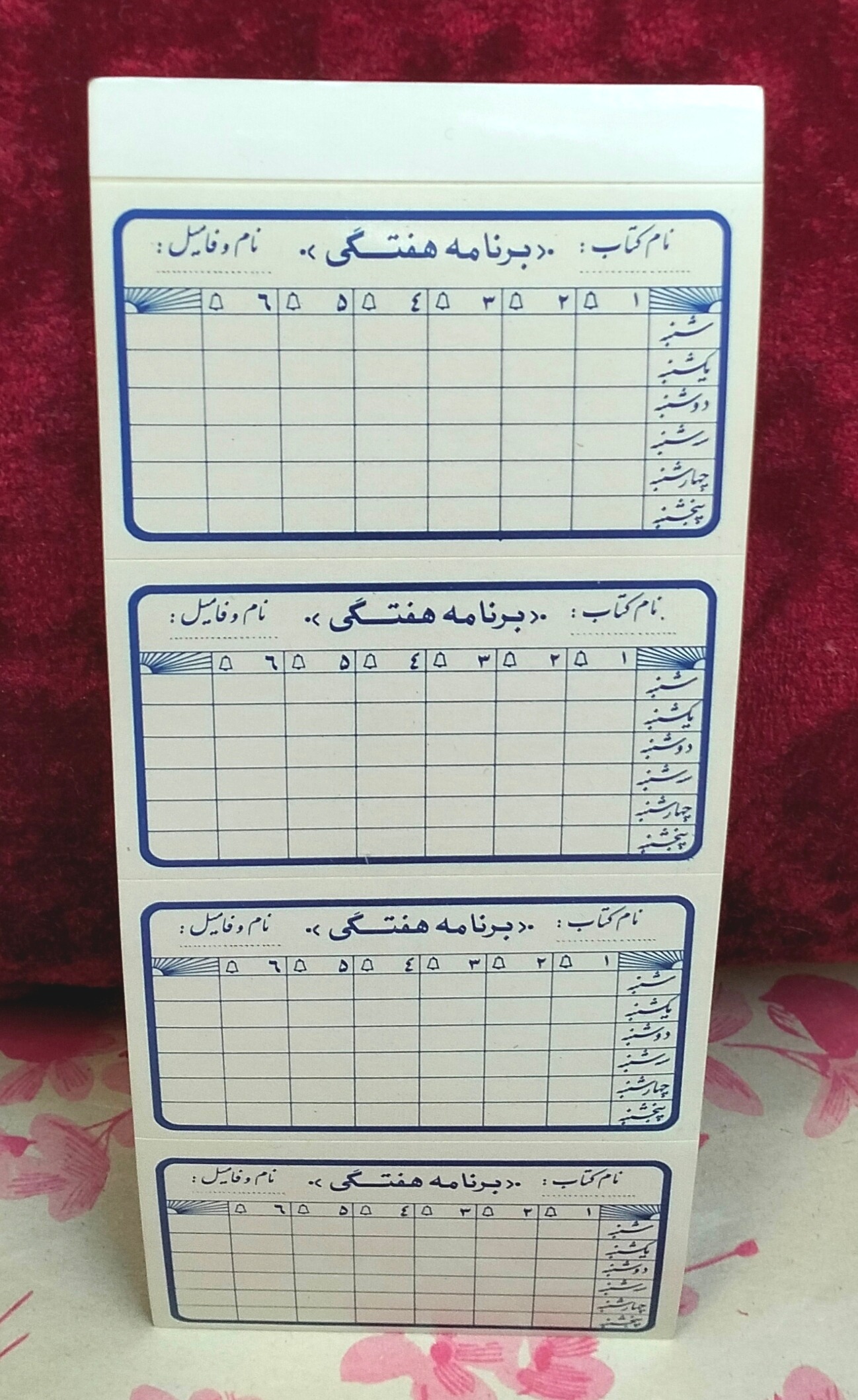 برنامه هفتگی برچسبی ، اصل و کلکسیونی ، آکبند قدیمی ، چاپ دهه 60 ، ته انباری ، مطابق عکسها