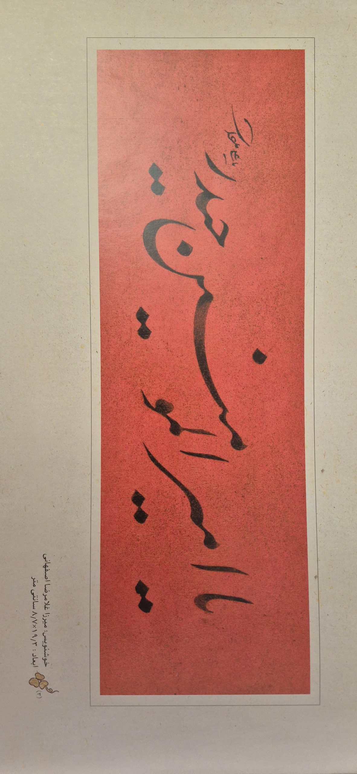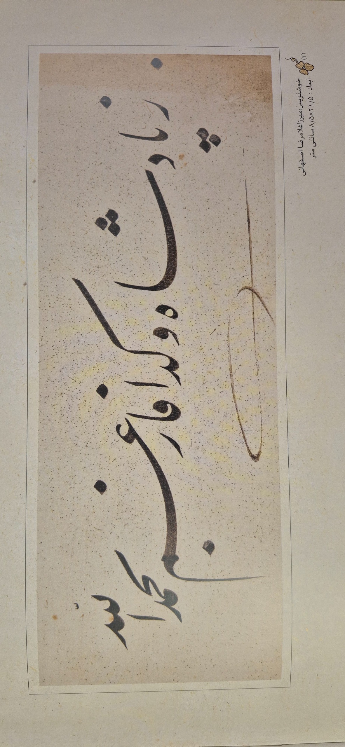 مشق ماندگار منتخبی از آثار خوشنویسان بزرگ . تمام گلاسه . رحلی افقی . شامل 30 تابلو از آثار اساتیدی چون میرزا غلامرضا اصفهانی .میرزا کاظم شیرازی .میرزا حسین .میرزا اسدالله شیرازی.عماد الکتاب.محمود خان کاشانی. مرتضی قلی شاملو و .... انتشارات موسسه آفرینش هنری آستان قدس رضوی