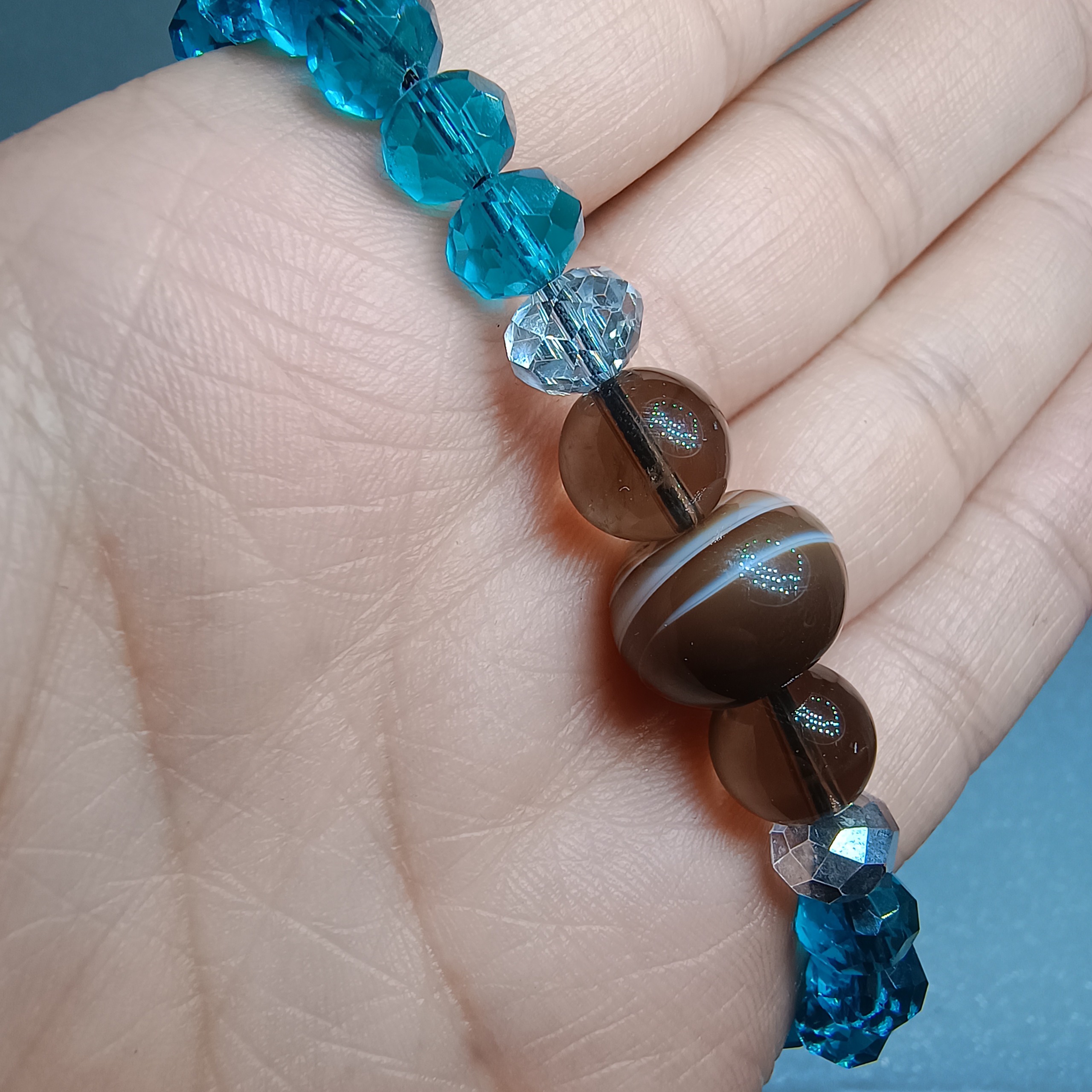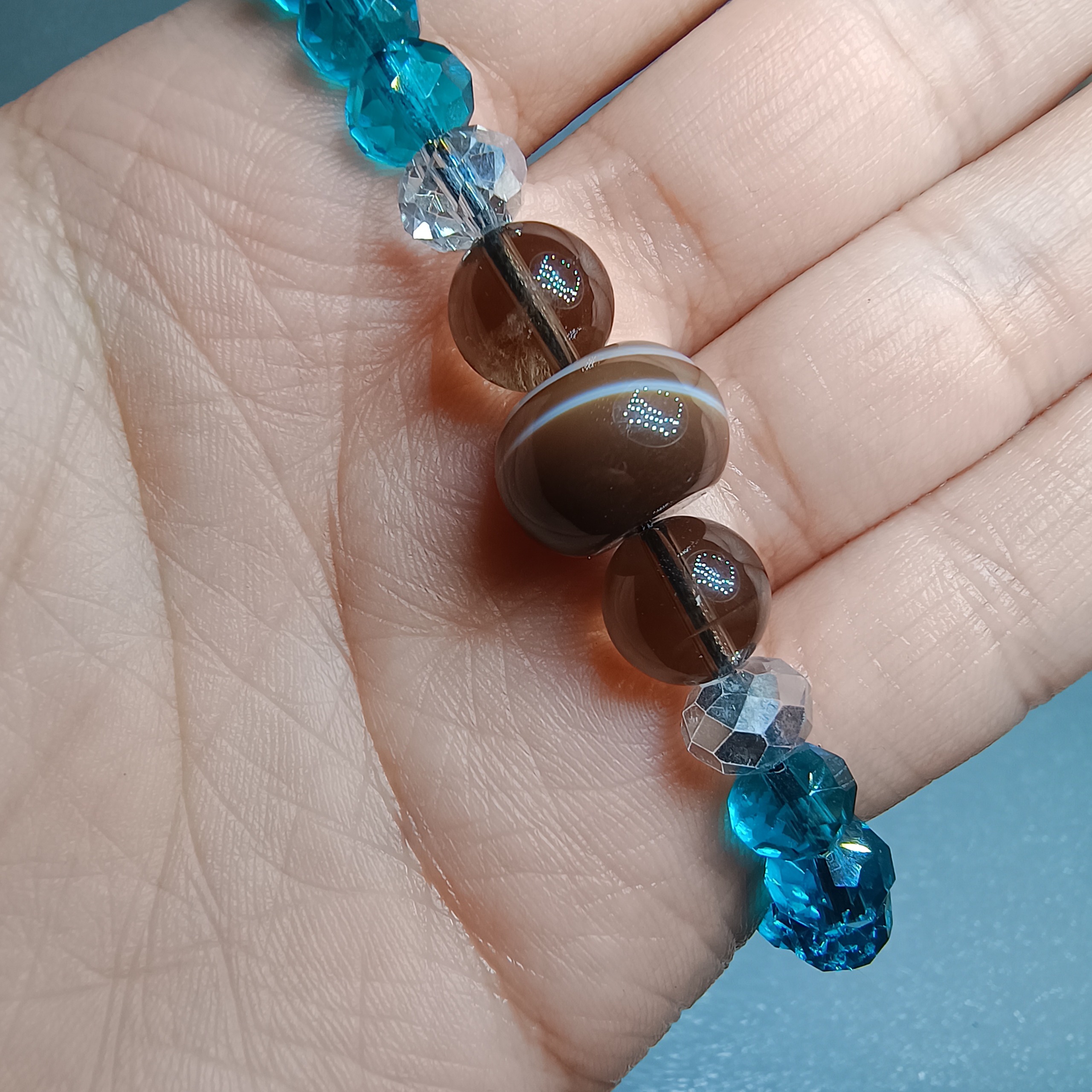 نام سنگ و مهره: مهره مرکزی عقیق سلیمانی اصل،مهره ابسیدین،مهره کریستال صنعتی آبی و سفید