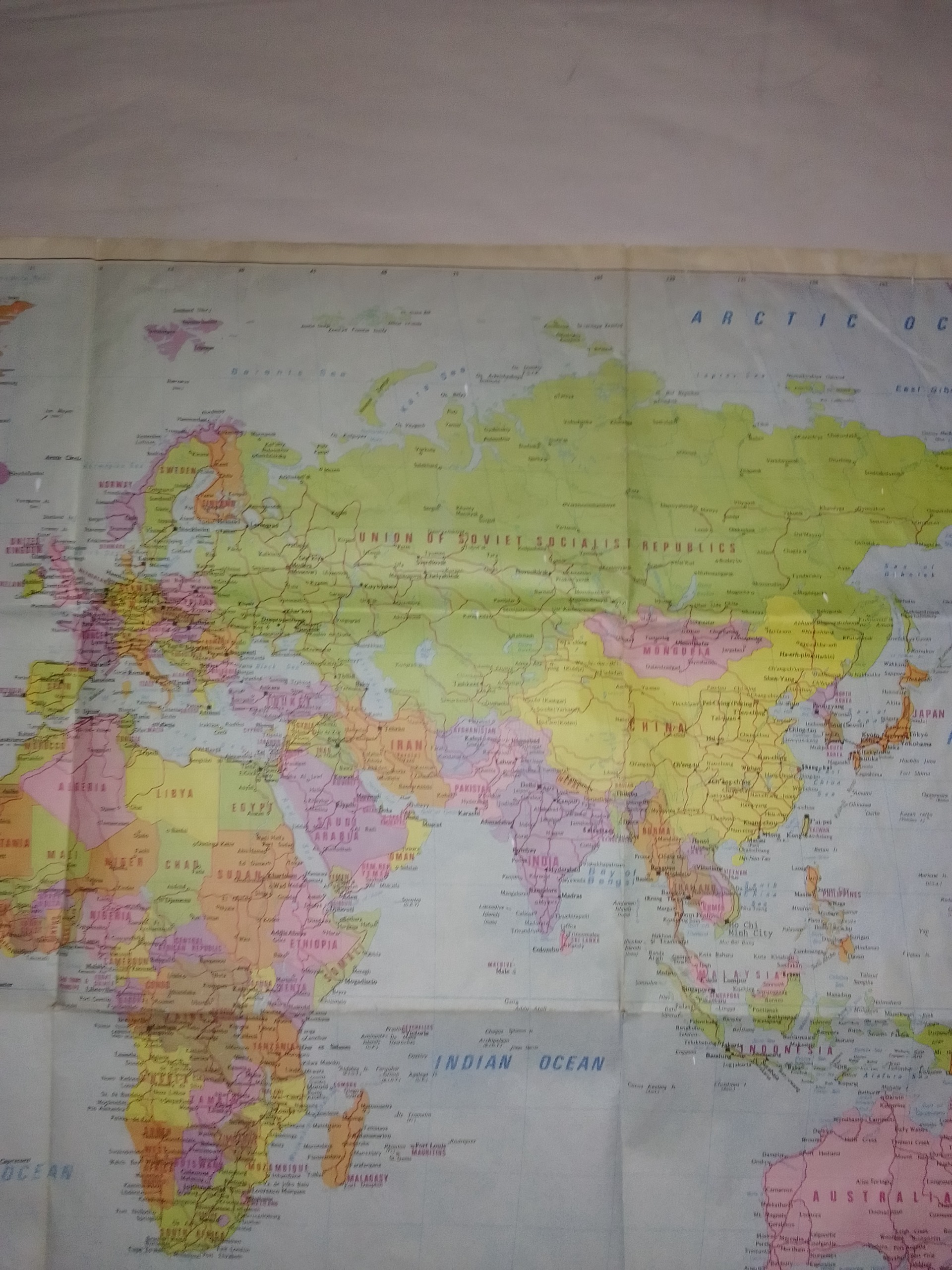نقشه چاپ زمانی هست که کشور شوروی و چک و اسلواکی هنوز چند کشور نشده بودن و ابعاد نقشه هم 99 در 68 سانتیمتر میباشد و نقشه از پشت و از قسمت تا تعدادی چسب خورده گی دارد که در تصویر مشخص است و کیفیت آن مطابق تصویر میباشد سوالی داشتید قبل از خرید بپرسید در خدمتم.