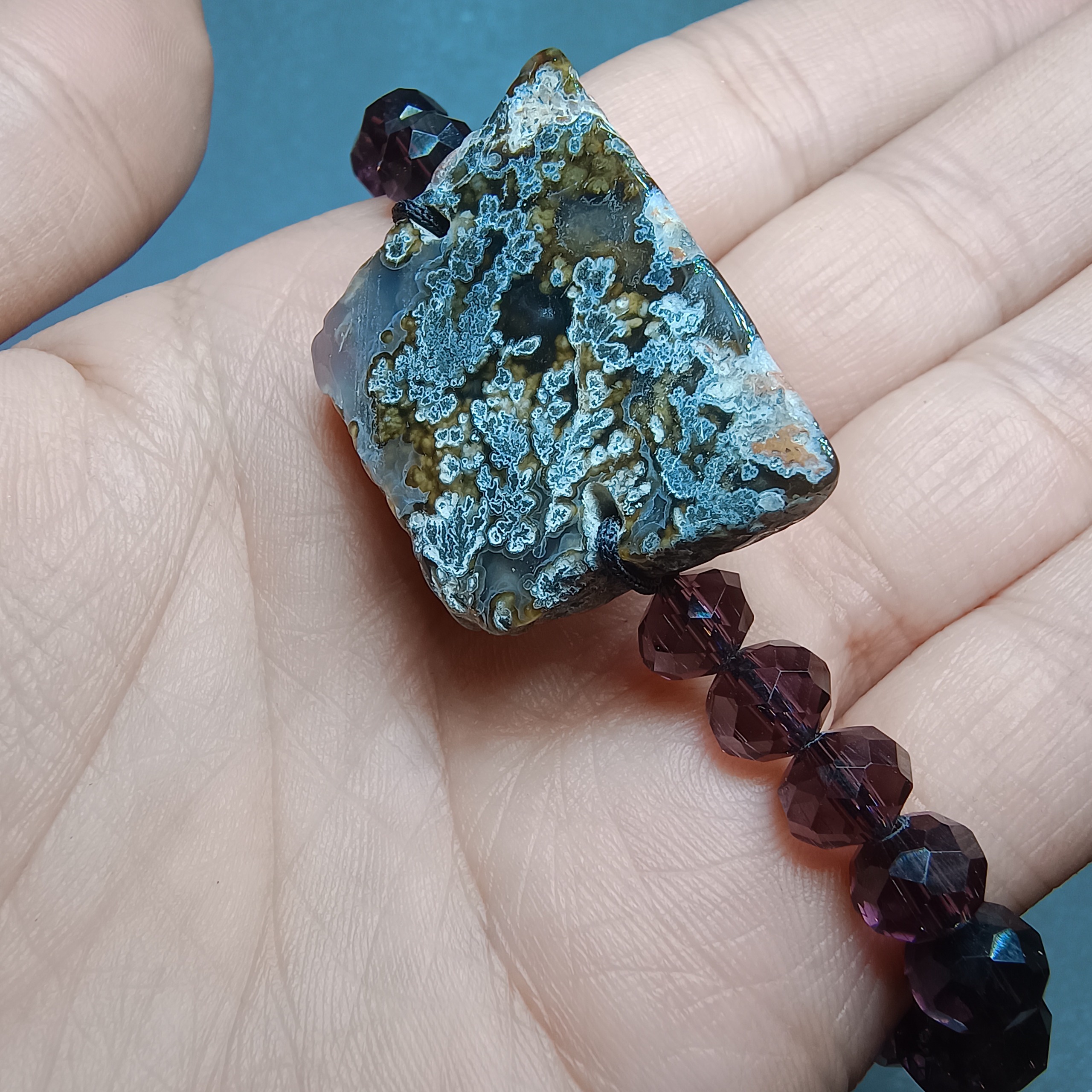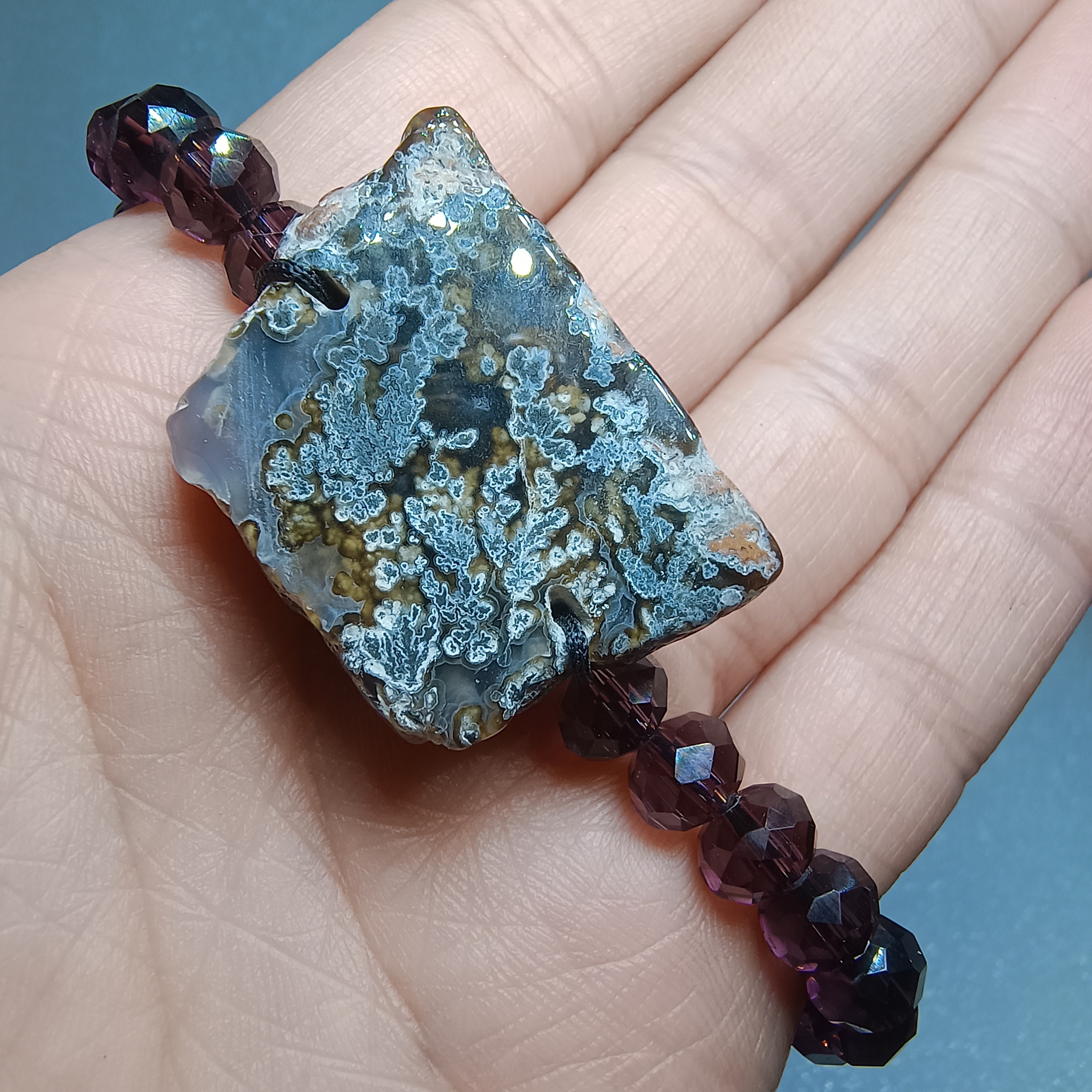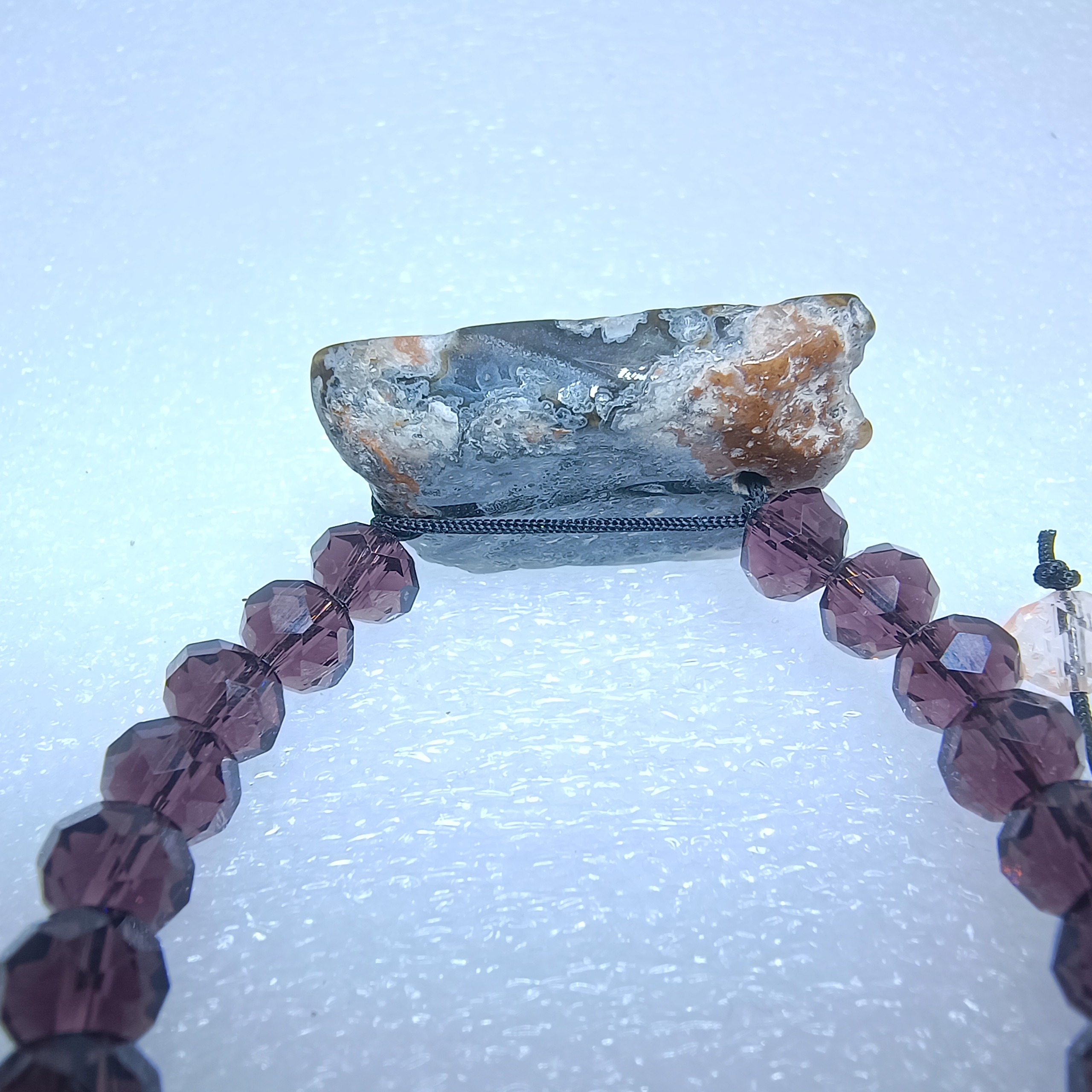 نام سنگ و مهره: عقیق گل شجر تیره با مهره های بنفش صنعتی
