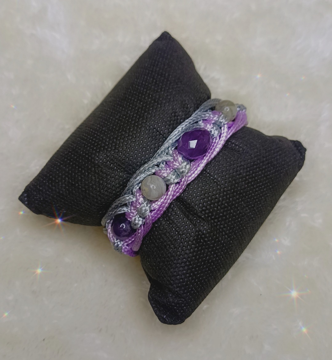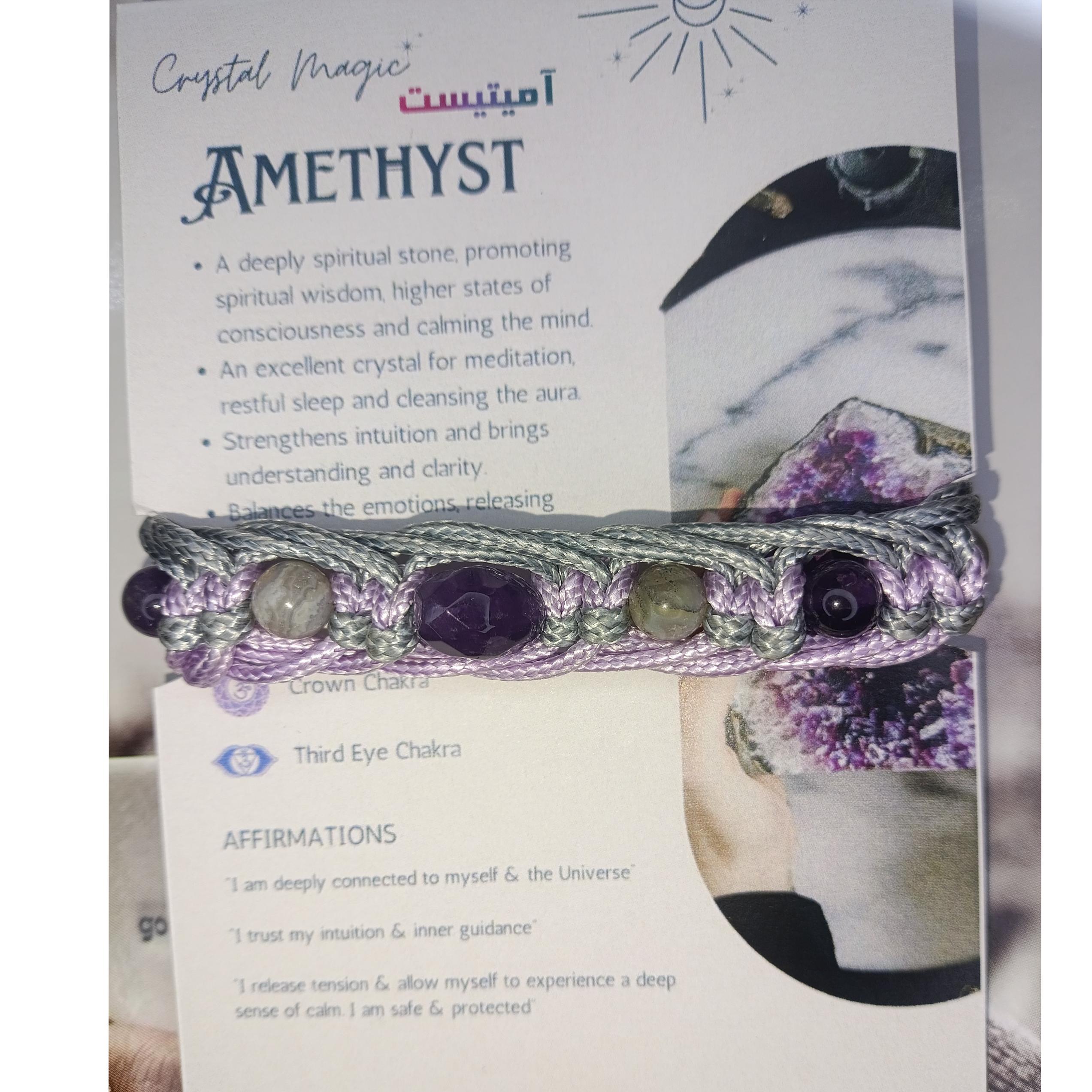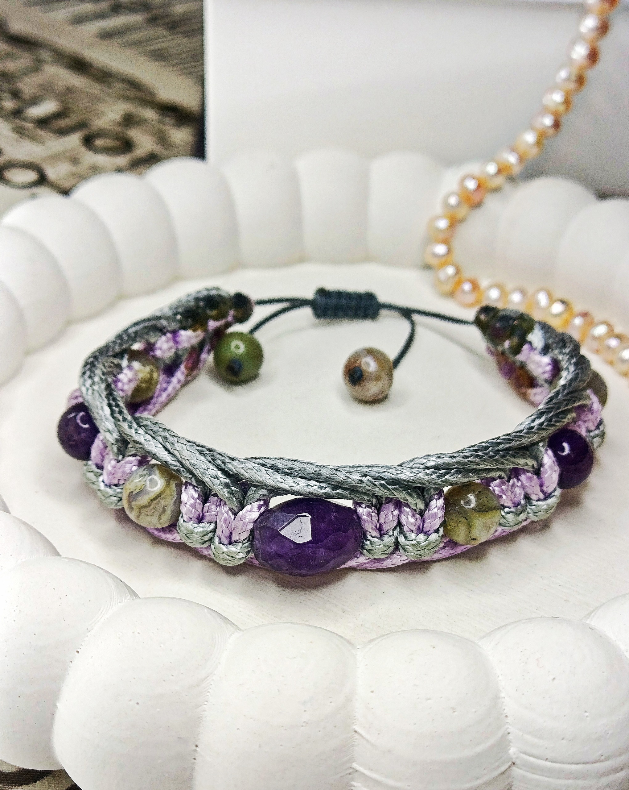دستبند استار بافت آمیتیست و عقیق خزهای