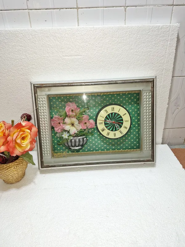 ساعت دیواری سالم درحال کار یک ترک جزئ درپشت دارد کفیت هم مطابق تصاویر میباشد.