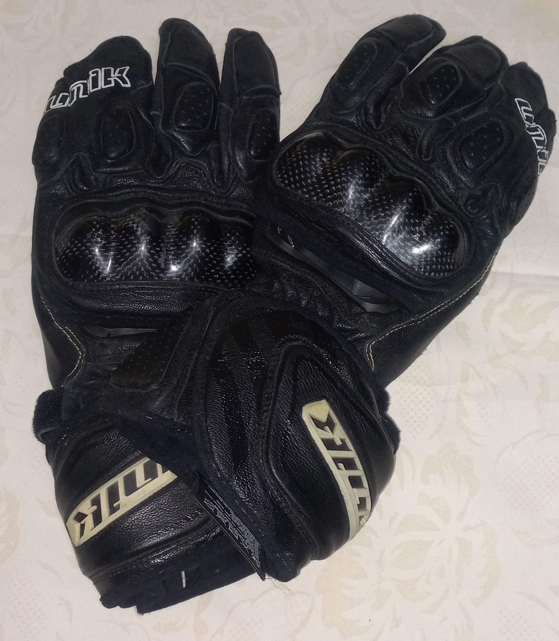 یک جفت دستکش تمام چرم گاوی ساق بلند موتور ریس سکن ها کربنی و سه فصل مناسب بهار تابستان پاییز گردش هوای فعال ضد تعریق اورجینال برند UNIK اسپانیایی سایز مدیوم مناسب دور دست 19.5 الی 22 سانت طول دستکش 26 سانت کاملا سالم فول پروتکشن