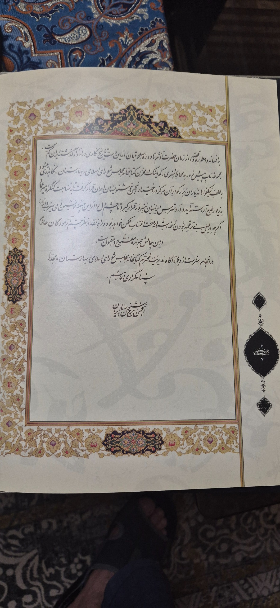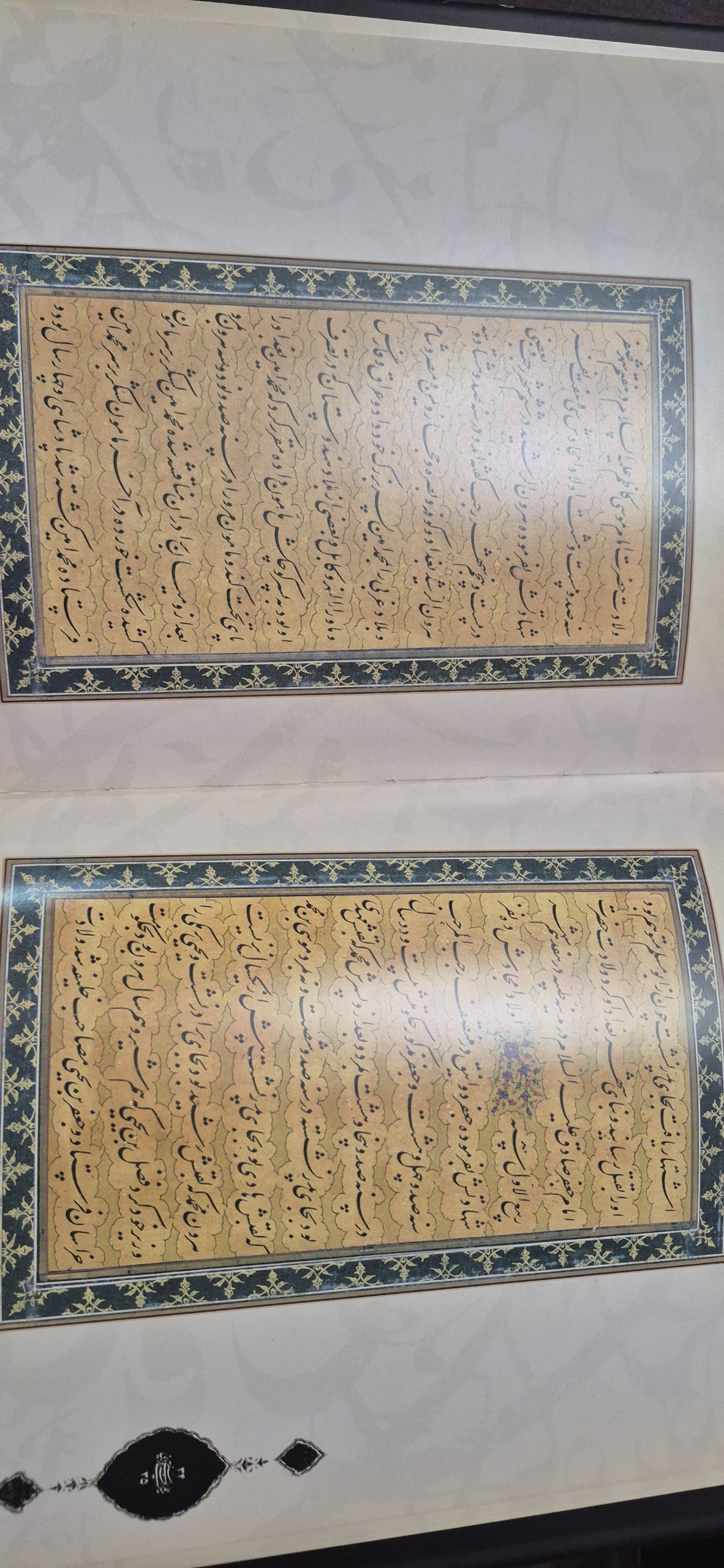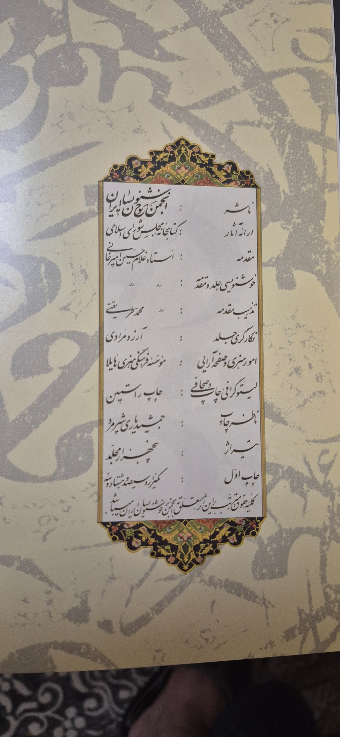 تاریخ مختصر داستانی ایران چهل و نه صفحه به خط میر عماد از مرقعات کتابخانه مجلس شورای اسلامی وانتشارات انجمن خوشنویسان ایران به مناسبت کنگره بزرگداشت میر عمادالحسنی سیفی قزوینی  1383 گالینگور روکش دار رحلی تمام گلاسه