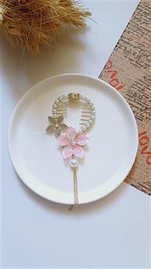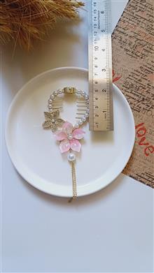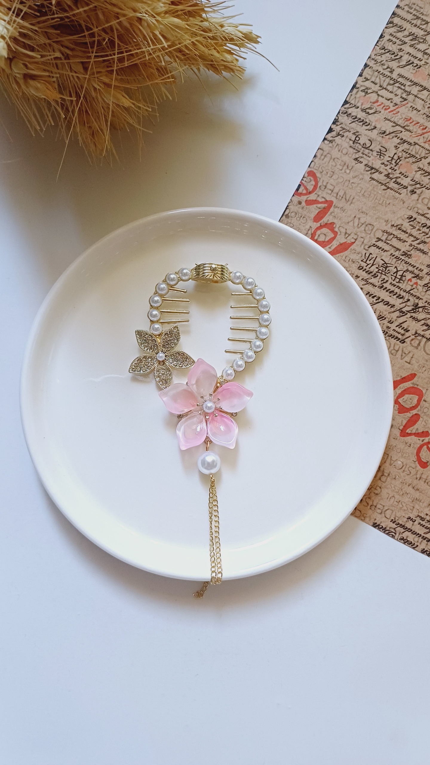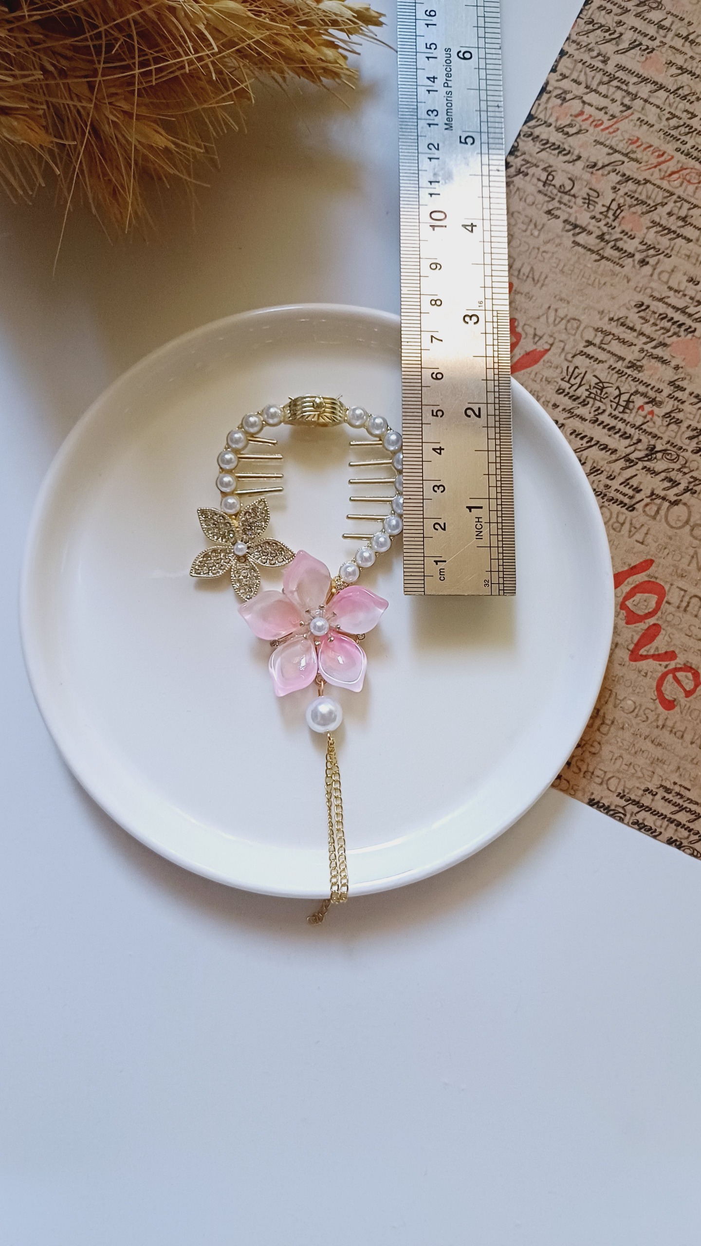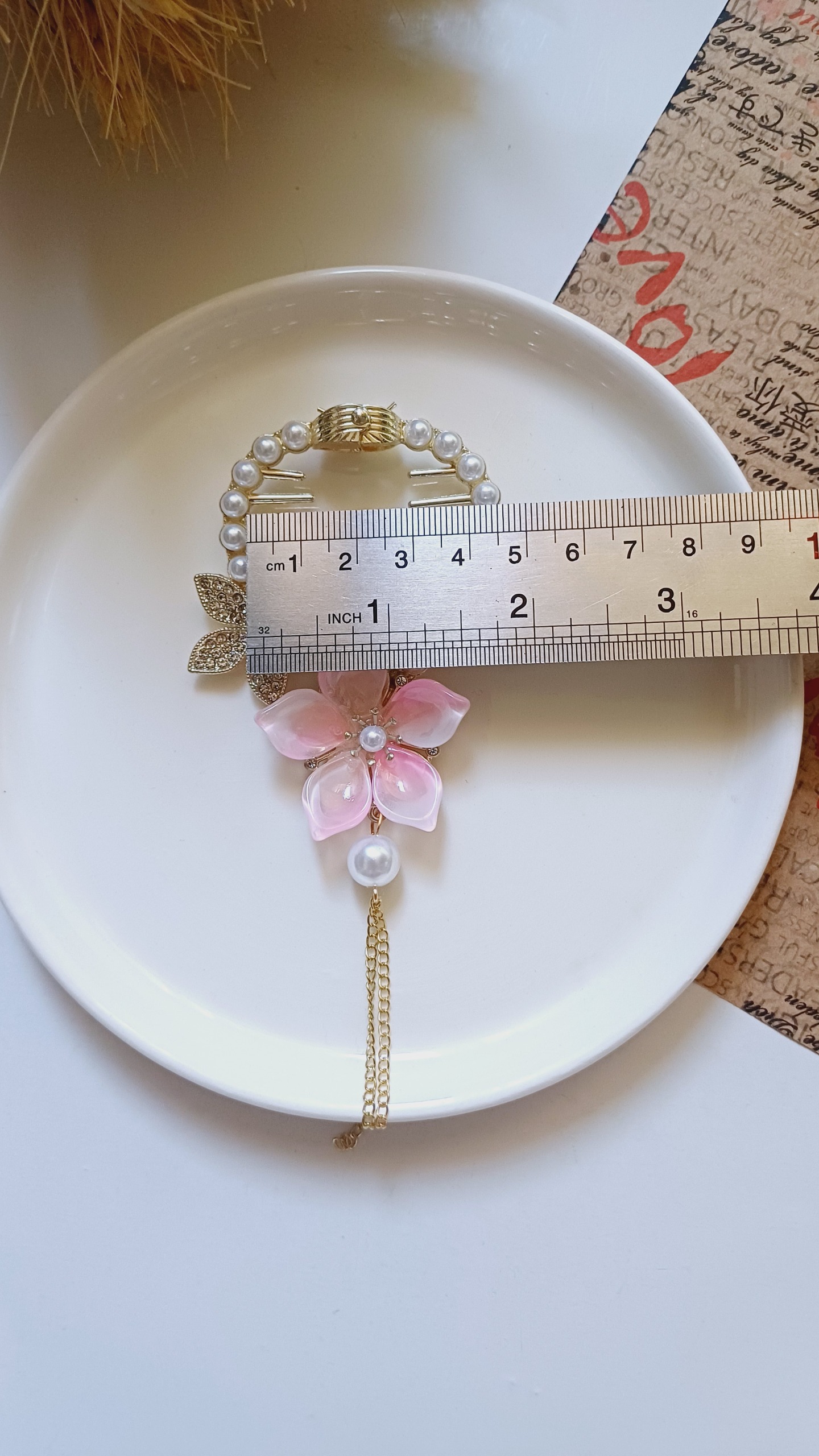 گیره مو گوجه ای و آبشاری طرح گل صورتی وارداتی