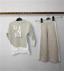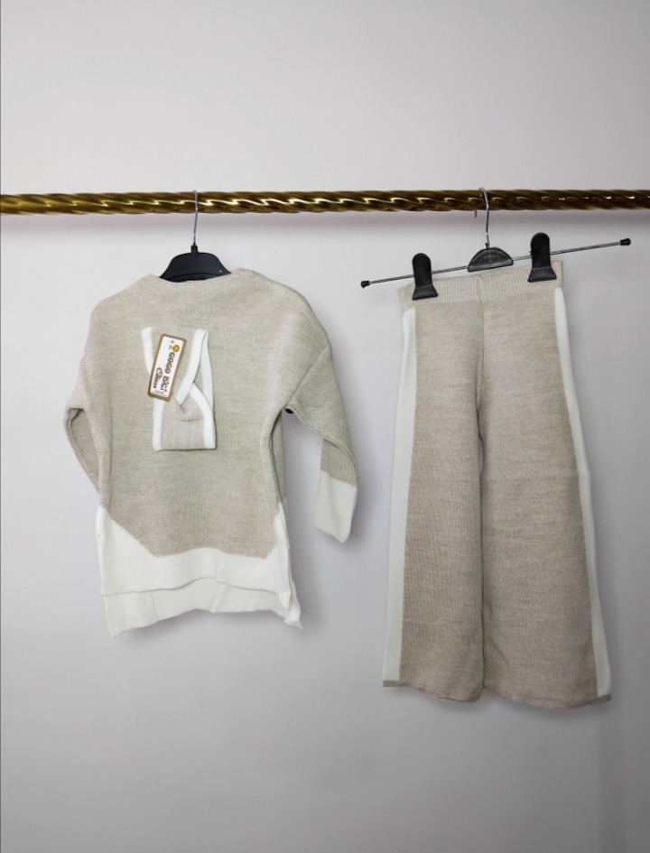 ست بافت دخترانه خارجی دارای سه تکه: بلوز، شلوار و هدبند می باشد.