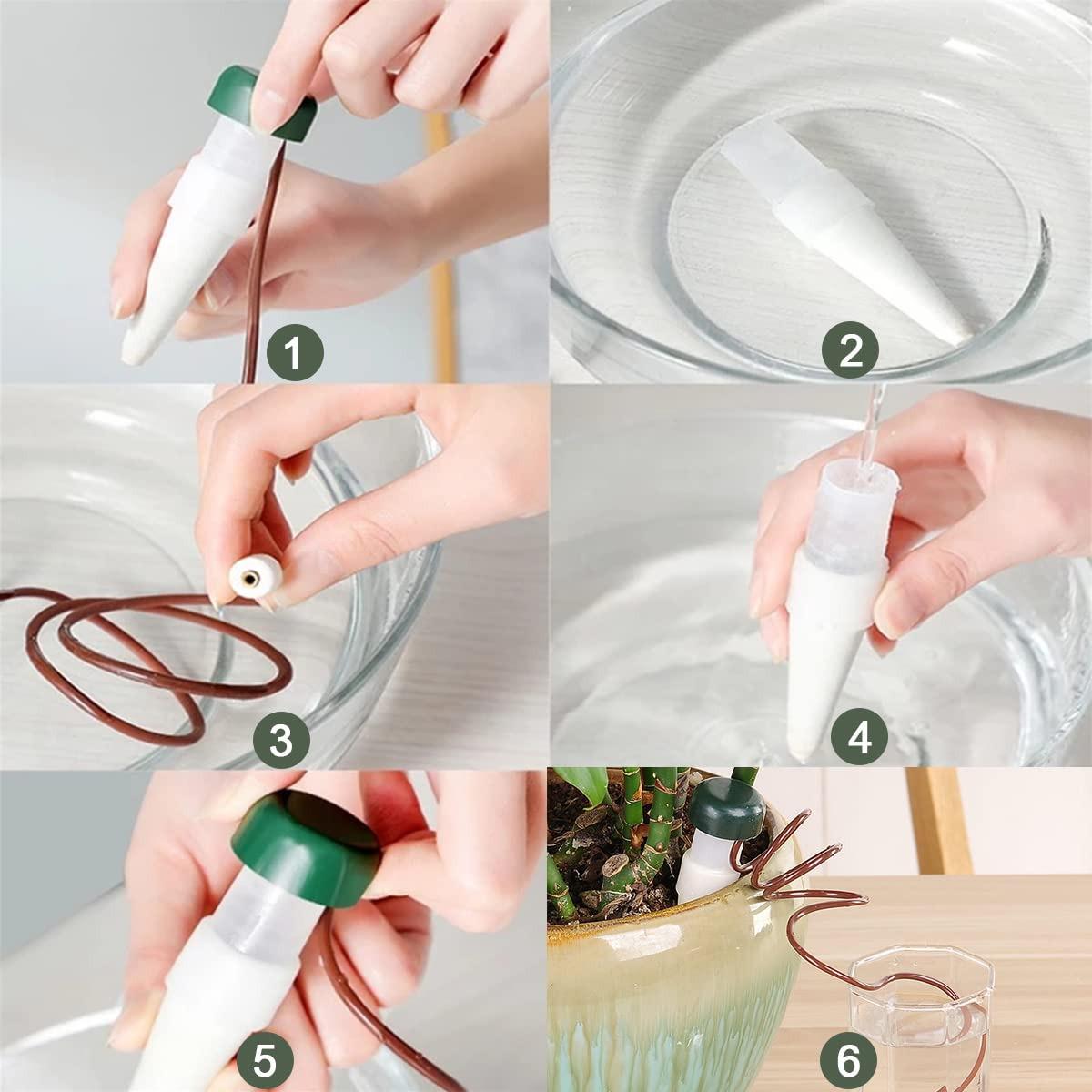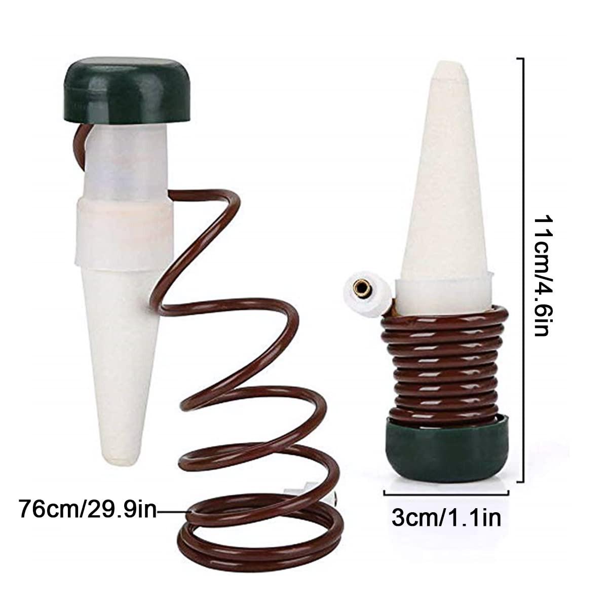 (دستورالعمل استفاده): با خشک شدن خاک، مخروط سرامیکی به تدریج آب را به خاک اطراف میرساند. این کار خلاءای را در داخل مخروط ایجاد میکند که آب را از ظرف آب مجاور میکشد. به محض اینکه خاک به اندازه کافی مرطوب شود، جریان آب از میله آبیاری متوقف میشود.