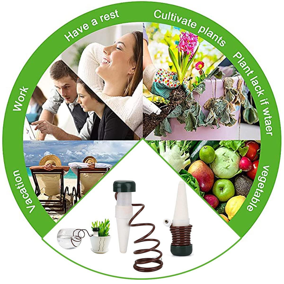 - سیستم آبیاری اتوماتیک با پایههای نگهدارنده، آبیاری قطرهای اتوماتیک گیاه با رهاسازی آهسته برای گیاهان داخلی یا خارجی