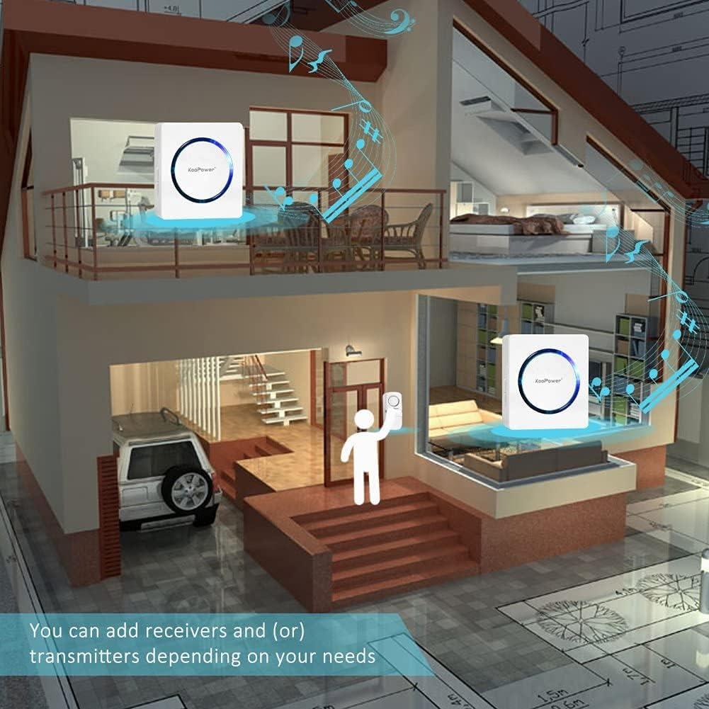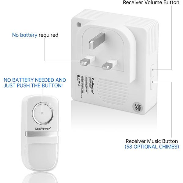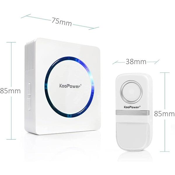 زنگ درب بیسیم، زنگ درب دوربرد KooPower 1600FT، (خود مولد برق هوشمند بدون باتری) و زنگ درب ضد آب با 1 دکمه فشاری (بدون نیاز به باتری) می باشد.