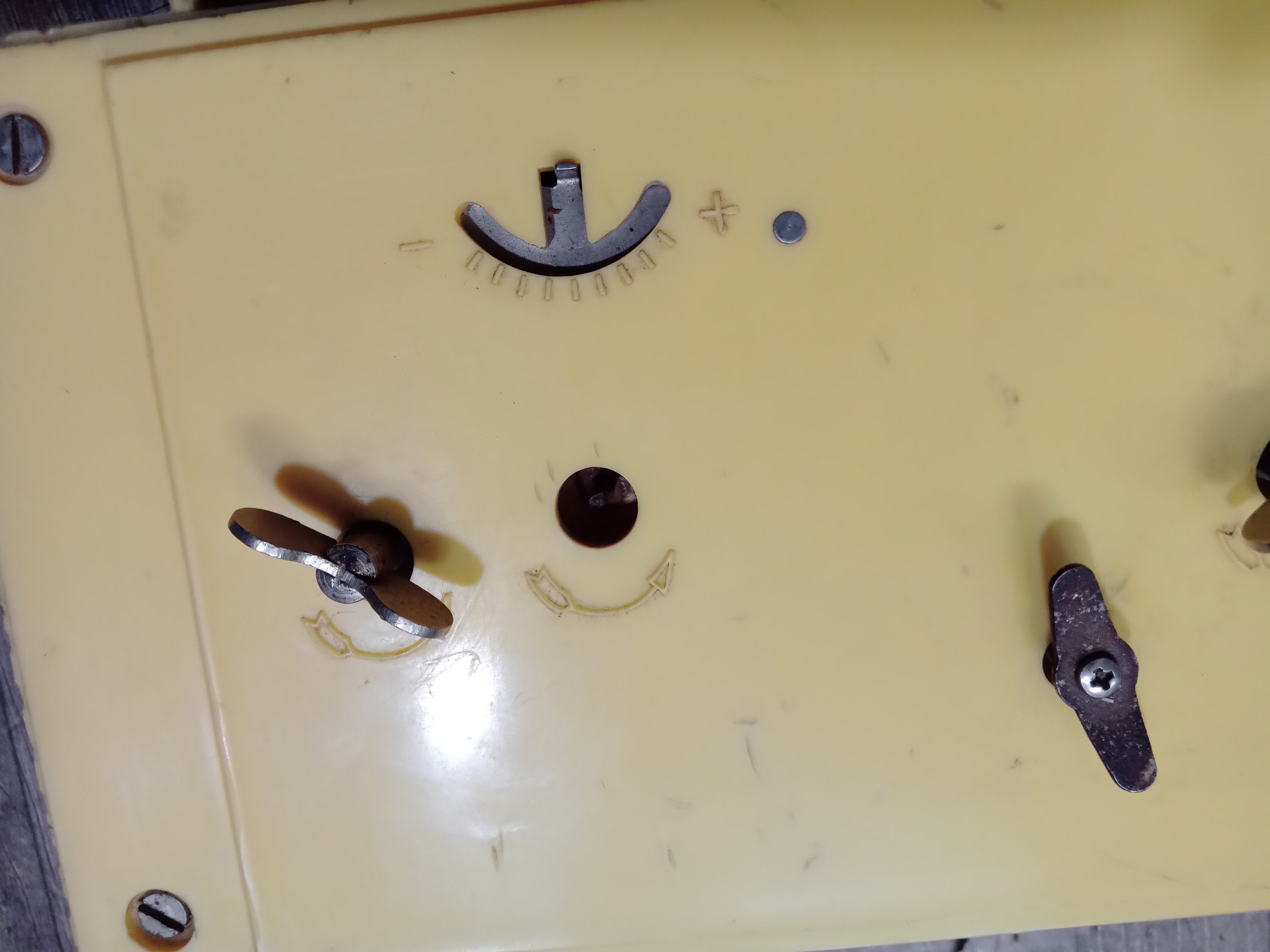 یک دستگیره که برای کوک کردن و یا تنظیمات ساعت است ، ندارد و افتاده است . ازپشت عکس گرفتم که ببینید