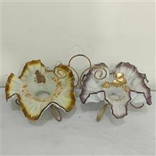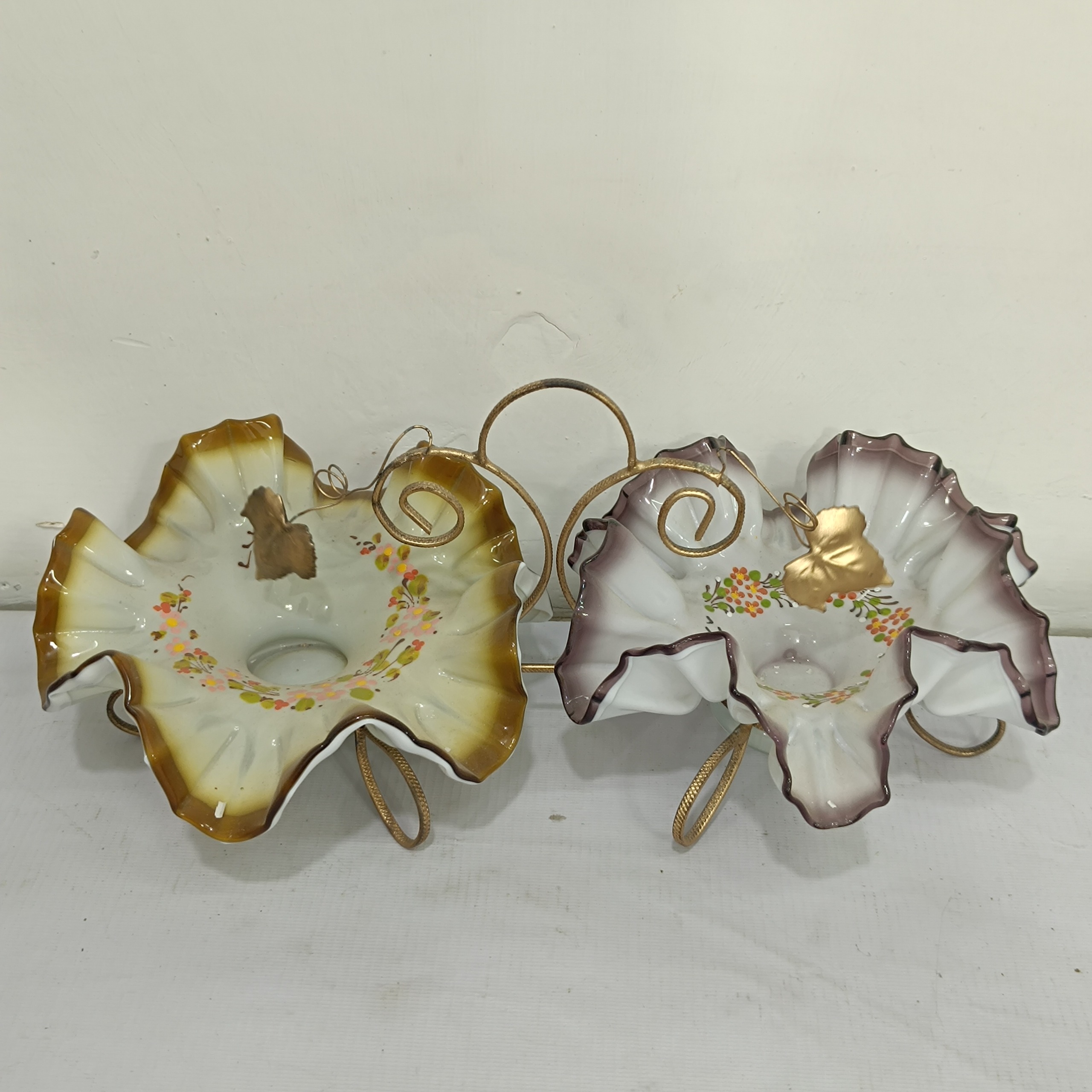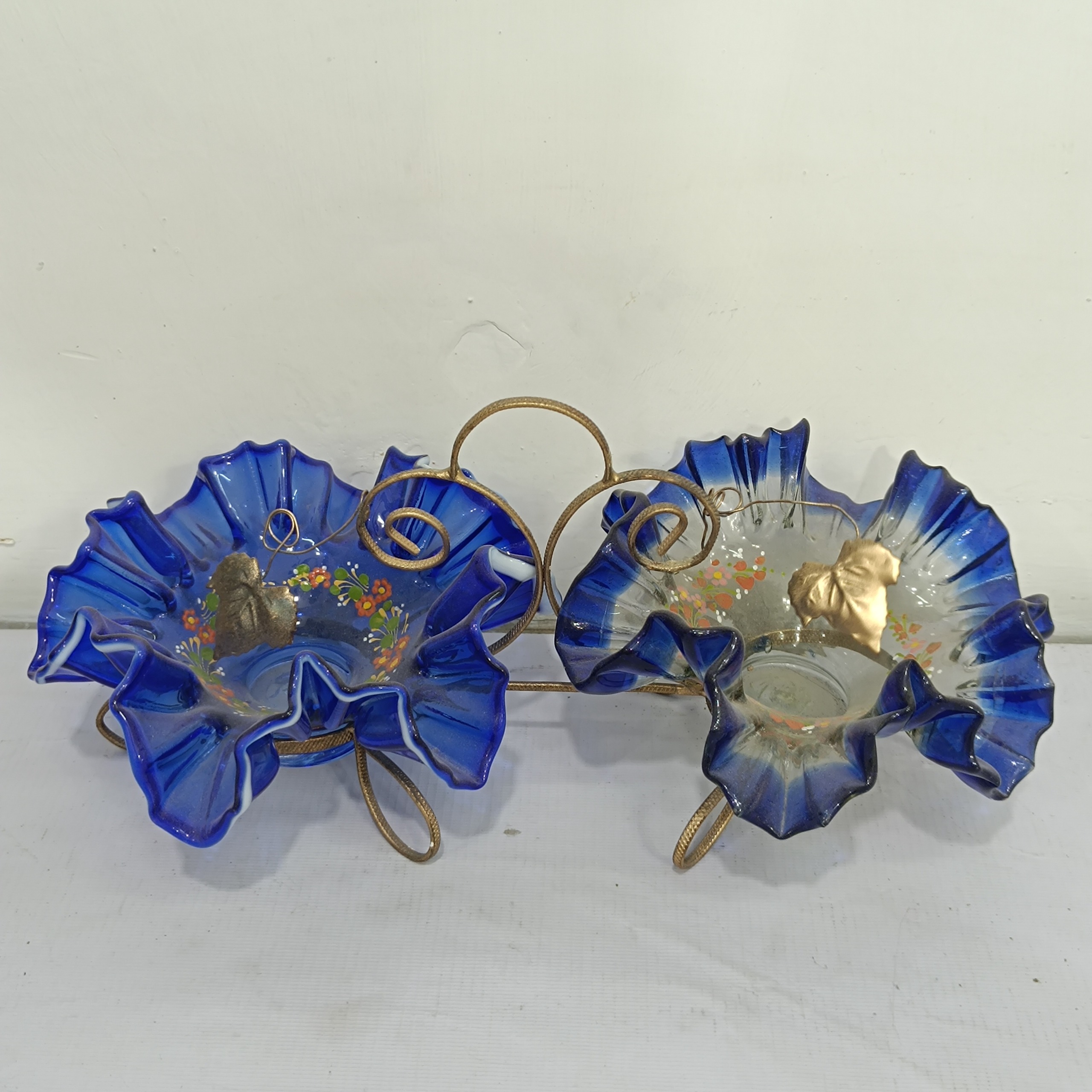 جفت شیرینی خوری طرح قدیم همراه پایه،نقاشی دست،رنگ کوره ای ثابت،قطر 17س،طول جفت کنار هم تقریبا 30س،رنگبندی موجود در عکسها،قیمت برای یک جفت همراه پایه،میتونین پایه برش بزنین و جدا کنید از هم