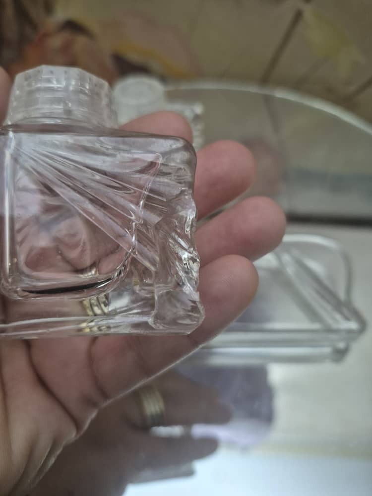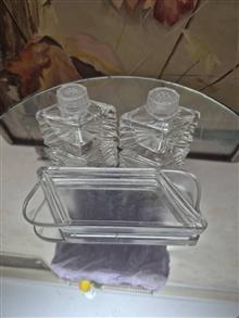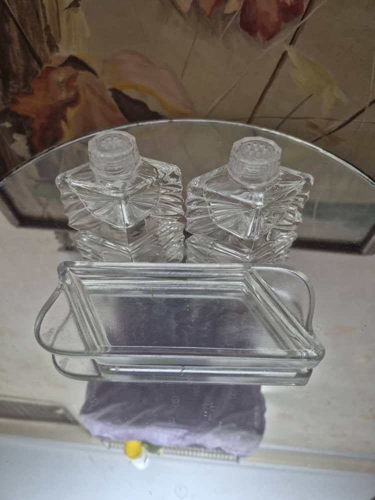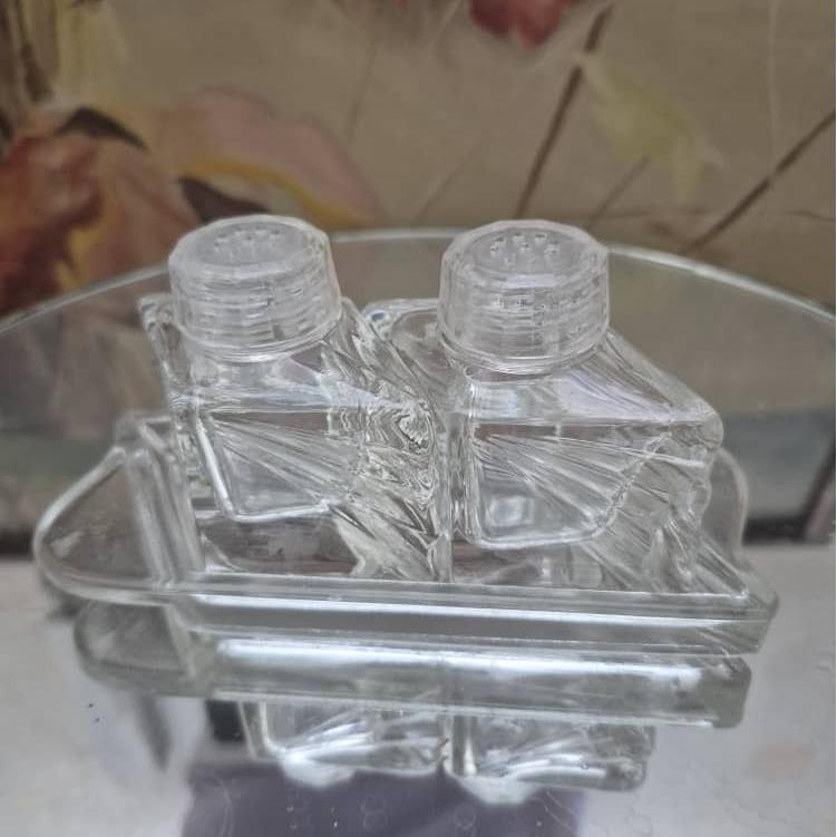 یک جفت نمکدان کریستال همراه استند چک قدیمی و کمیاب مخصوص کلکسیونرها بسیار زیبا یک نمکدان پریدگی داره