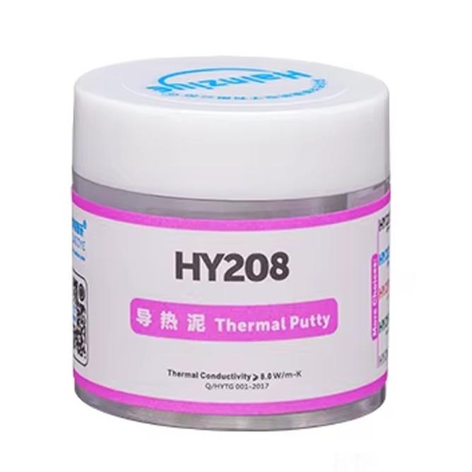 خمیر سیلیکون حرارتی هالنزیه مدل HY-208 با ضریب انتقال حرارتی 8 وات بر متر کلوین با رنگ صورتی آدامسی در بسته بندی 10 گرمی عرضه می شود.