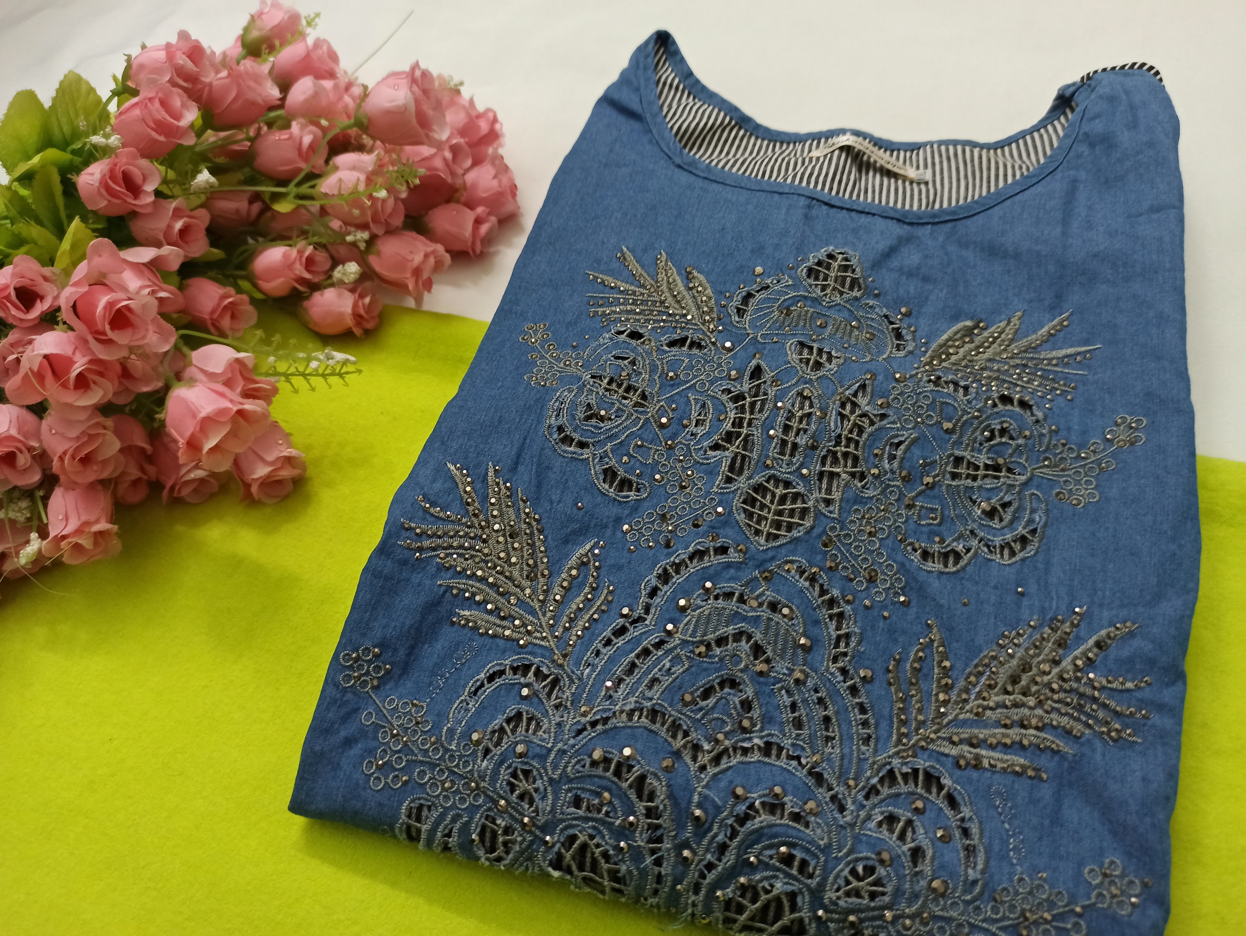 جلوی لباس گلدوزی و نگین کوبی شده فوق العاده با کیفیت و زیباست