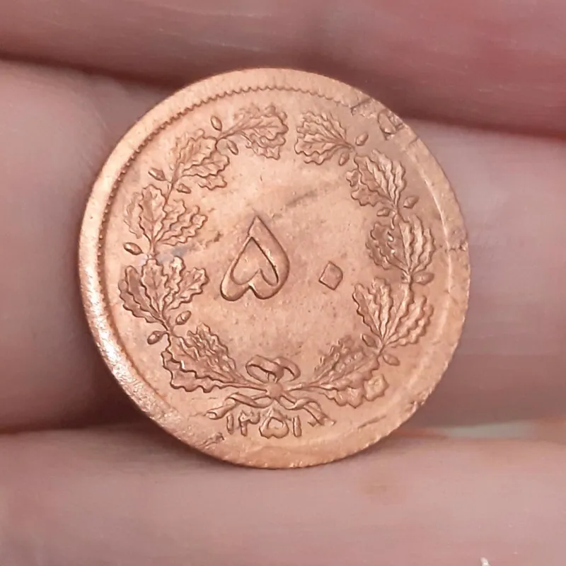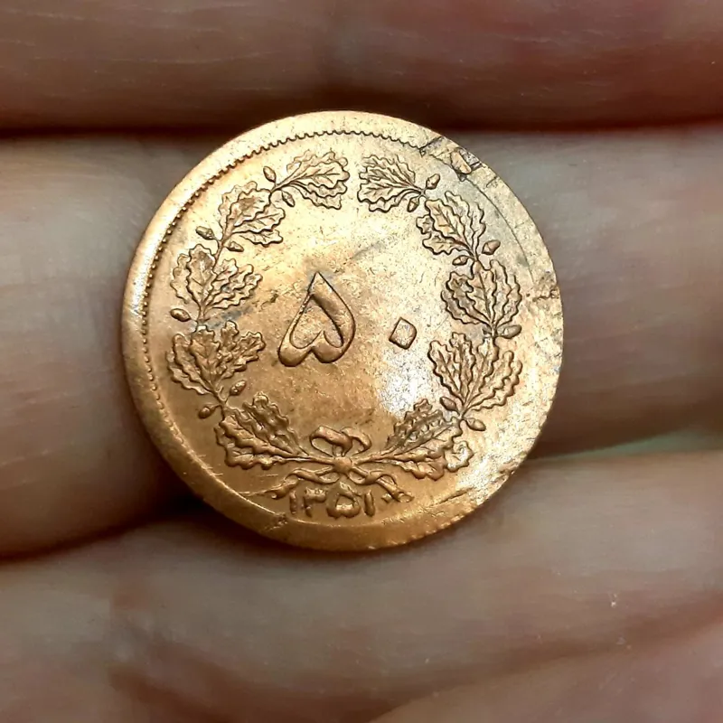 پنجاه 50 دینار مسی تاریخ دیده نشده 1351 کمیاب