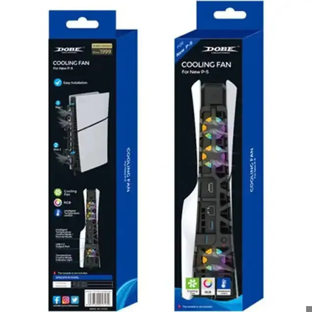 سازنده: Dobe مدل TP5-3538 سازگار با هر دو نسخه پلی استیشن 5 اسلیم دارای سه فن خنک کننده دارای نورپردازی RGB