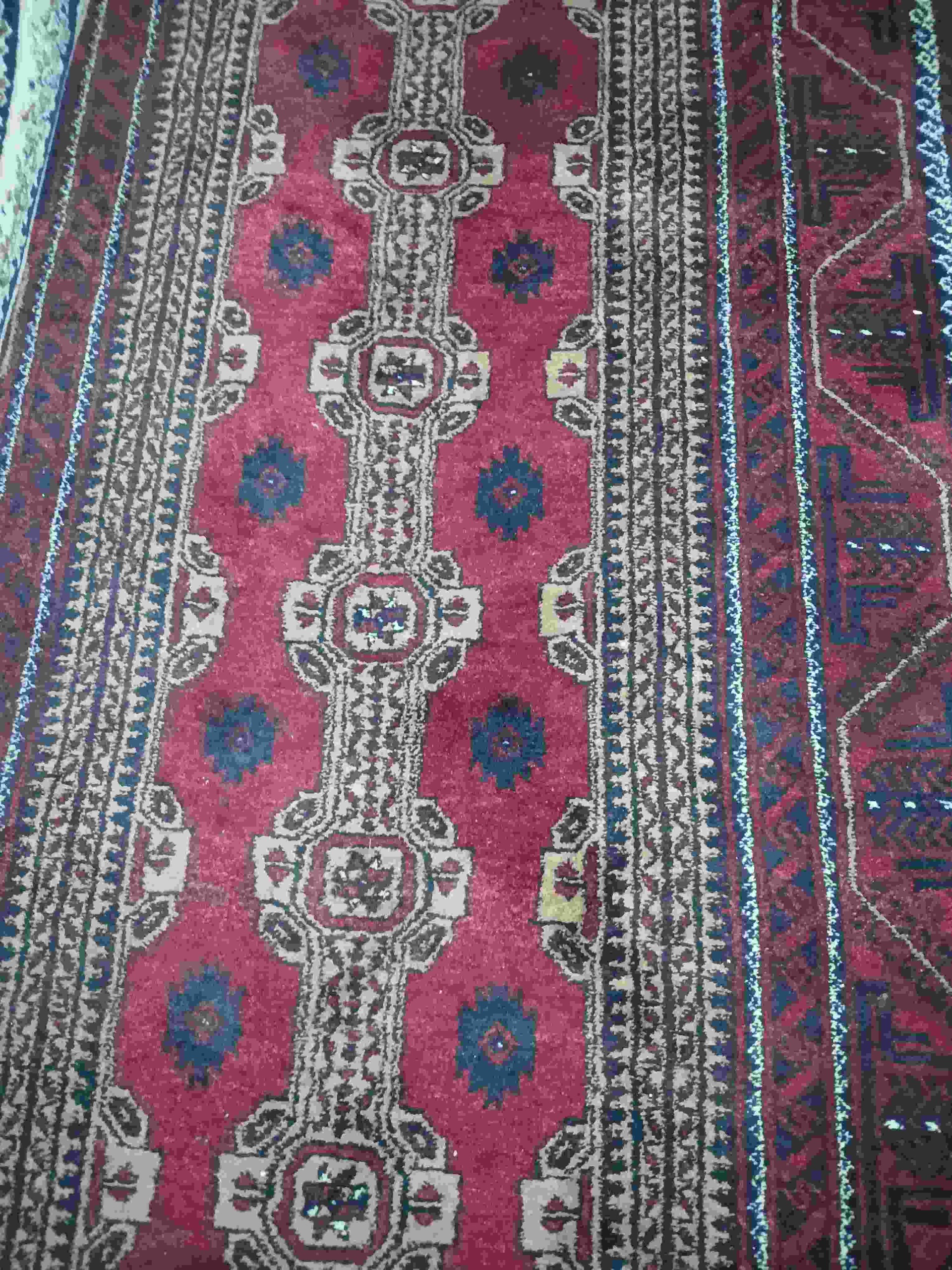 قالیچه دستبافت قدیمی در حد نو بدون پارگی جنس از پشم گوسفند و رنگ شده با گیاهان دارویی به ابعاد 220×120 ارسال رایگان به سراسر کشور