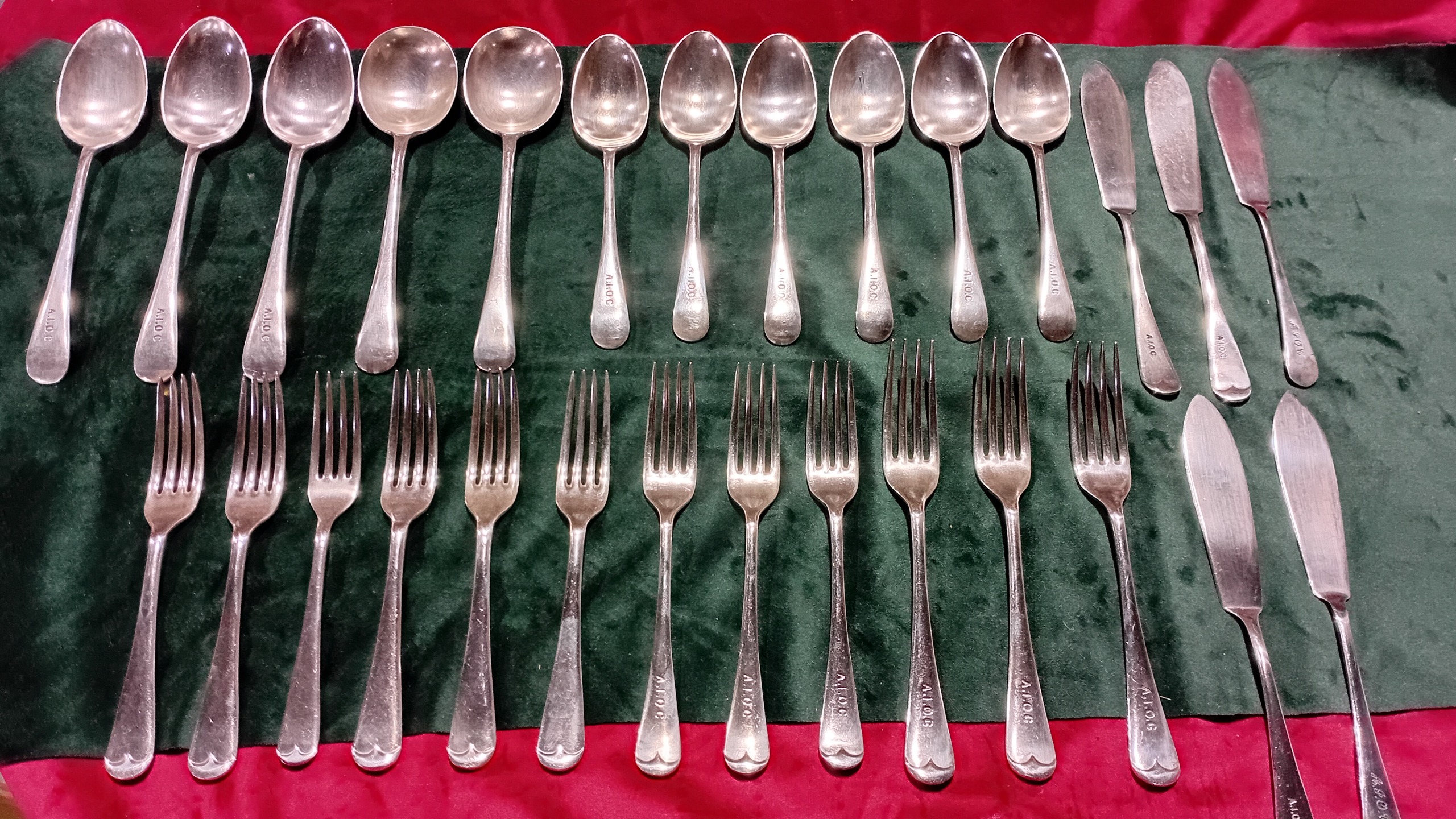 قاشق و چنگال ها سرویس کامل دقیقا چیزی که داخل عکس هستند می باشد جنسشون نقره