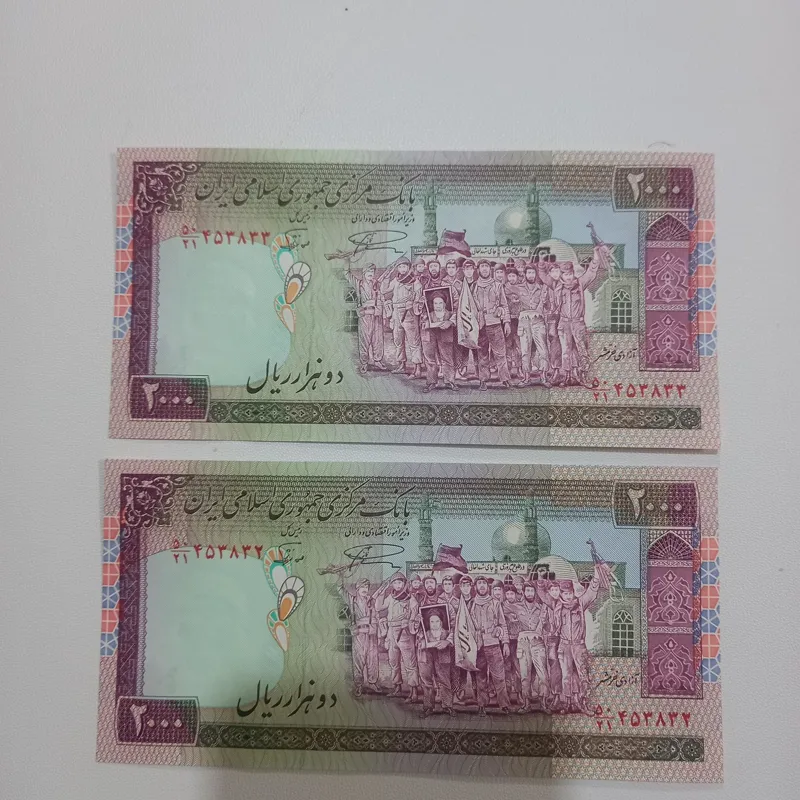 یک جفت اسکناس 2000 ریالی تظاهراتی نو با امضا نمازی و نوربخش و فیلیگران فهمیده