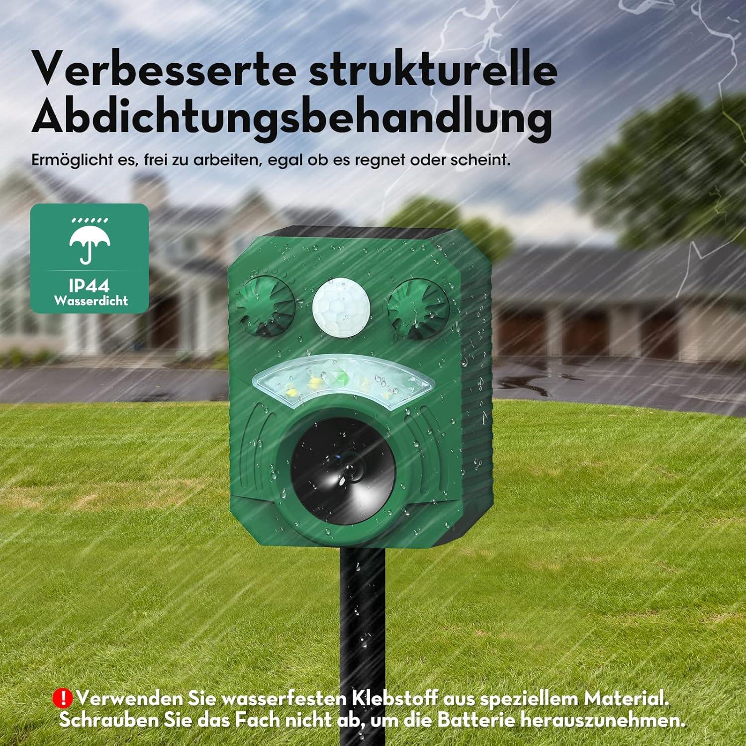 (طراحی شده برای استفاده بادوام): این دافع حیوانات با کلاس حفاظت ضد آب IP44 تأیید شده و با یک پوشش ضد آب ساختاری بهبود یافته است، به راحتی در برابر باران، برف یا باد مقاومت میکند. از آنجایی که این دافع حیوانات اولتراسونیک در حین استفاده به انرژی خورشیدی نیاز