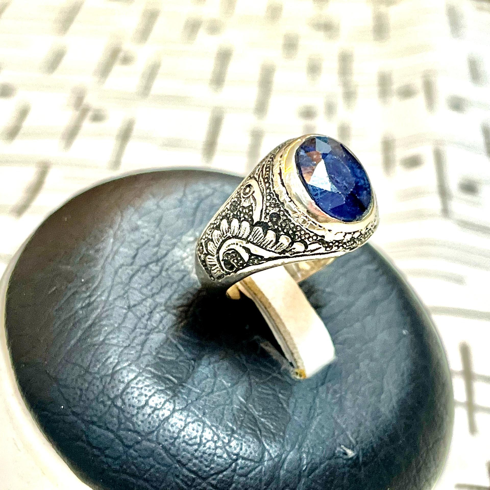 انگشتر یاقوت کبود آفریقایی دستساز و قلمزنی دستی