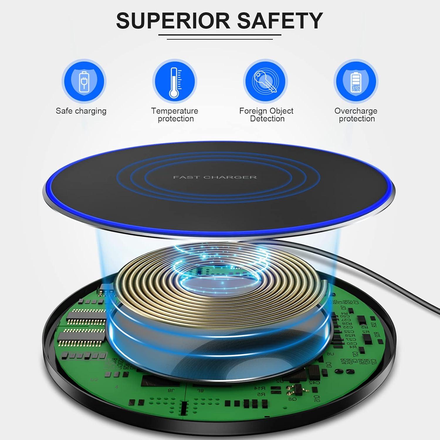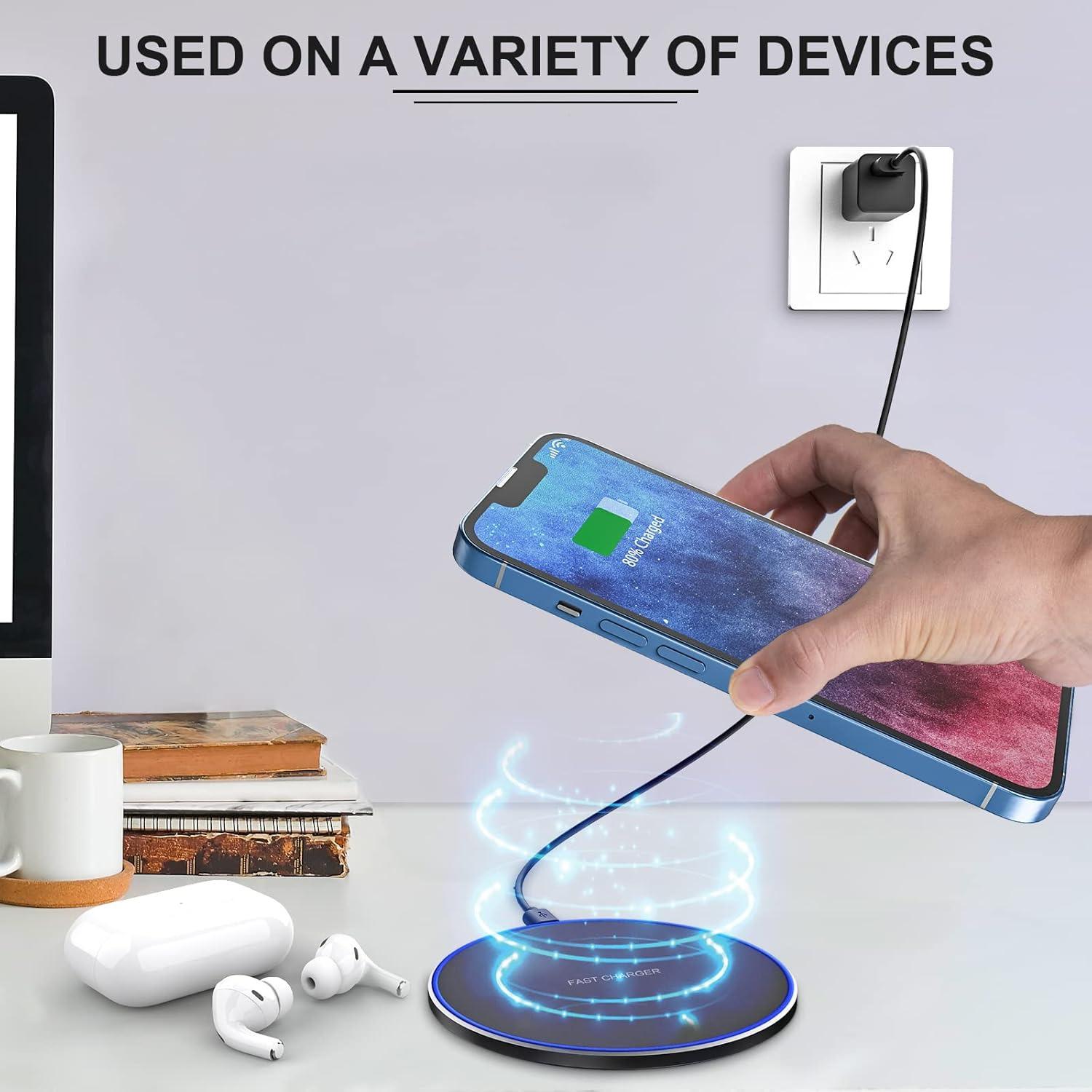- شارژر بیسیم سریع (پد)، شارژ بیسیم حداکثر 10 وات سازگار با آیفون 14/14 پلاس/14 پرو/14 پرو مکس/13/12/SE/11/X/XR/8، ایرپادز/ایرپادز پرو، گوگل نکسوس 4/هواوی/الجی/سامسونگ (بدون ...)