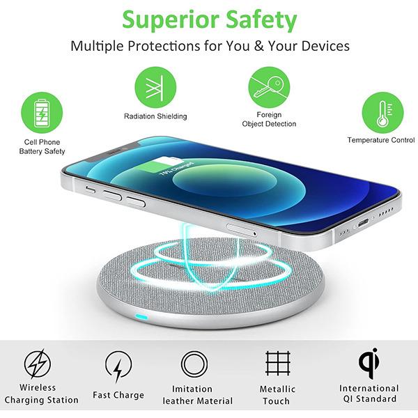 - شارژر بیسیم دارای یک تراشه هوشمند است که محافظت قابل اعتماد در برابر گرمای بیش از حد، ولتاژ بیش از حد و اتصال کوتاه را برای اطمینان از شارژ ایمن فراهم میکند.