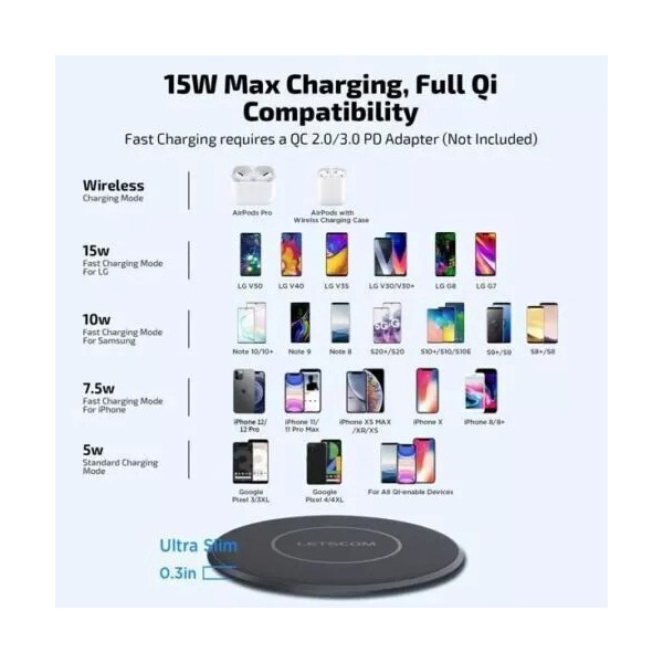 - شارژر بیسیم گوشی Letscom Super P 15W - مشکی