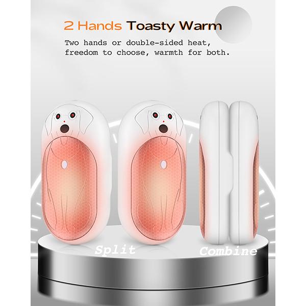- (گرمکن دست قابل شارژ 2 در 1 USB) جمع و جور و دارای درپوشهای چفتی است که میتوان به صورت جداگانه یا با هم استفاده کرد. سبک و آسان برای نگهداری، قابل حمل در هنگام کمپینگ، شکار و ورزش در فضای باز