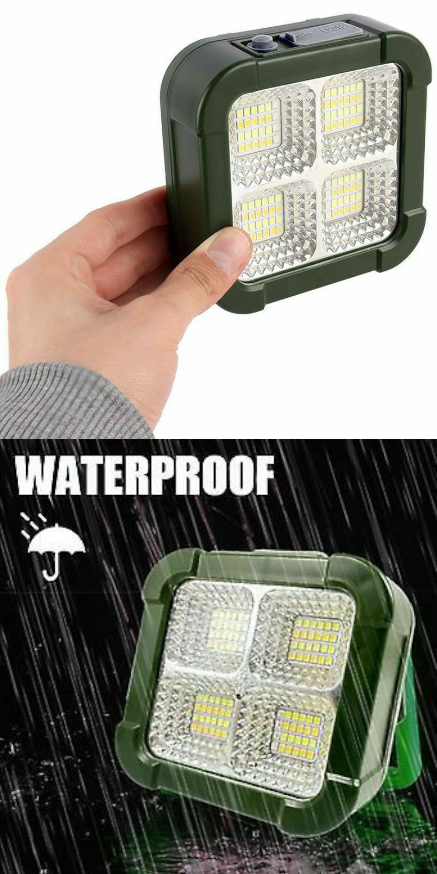 پروژکتور اضطراری شارژی برند KASHSA مدل QZ-D01 دارای پنل خورشیدی، مناسب جهت استفاده در زمان بی برقی، تعمیر ماشین، سفر، کمپینگ، طبیعت گردی و ...