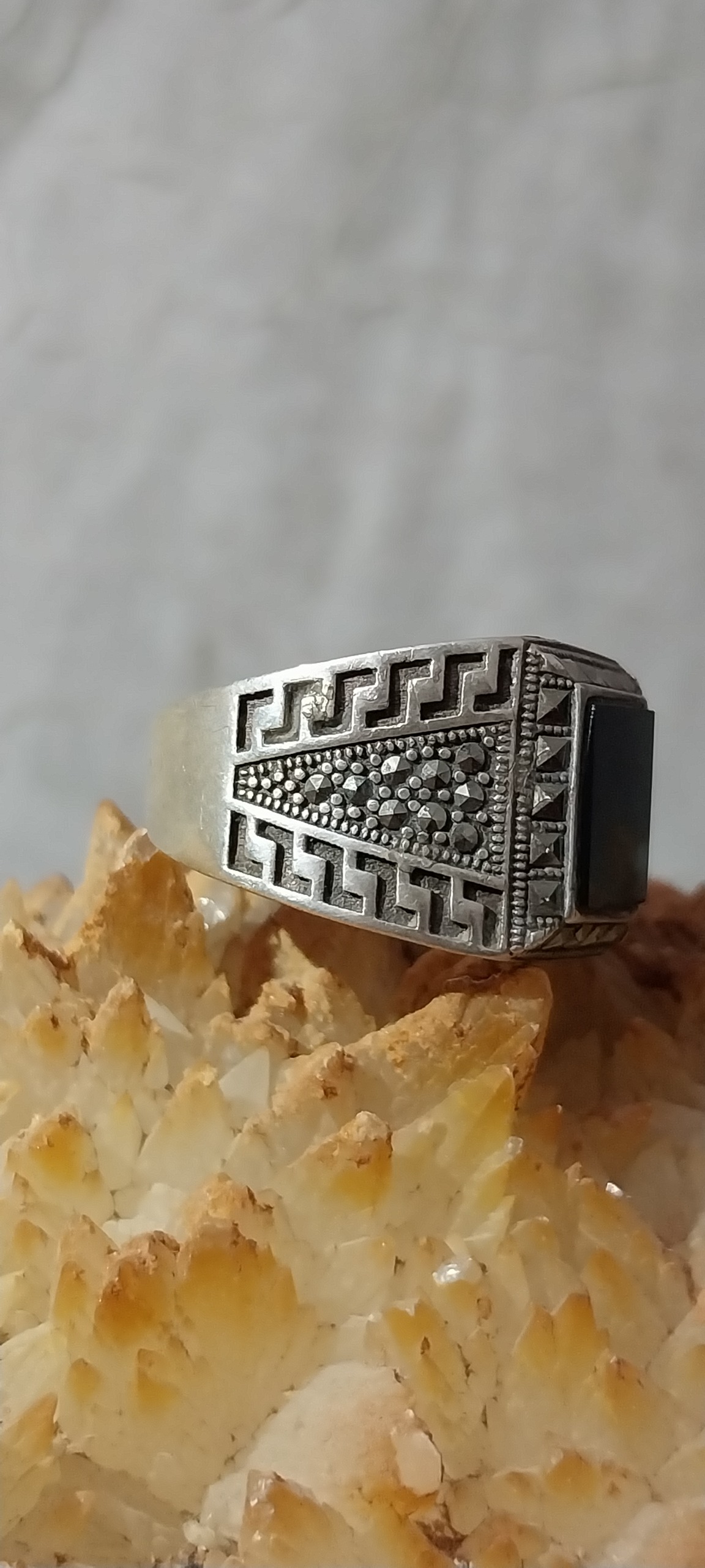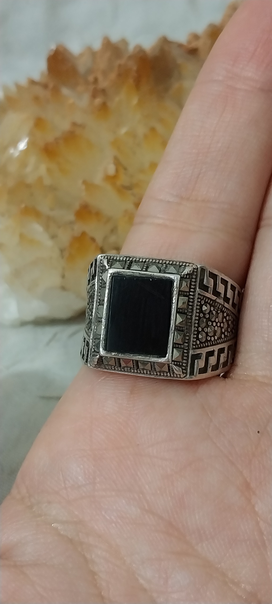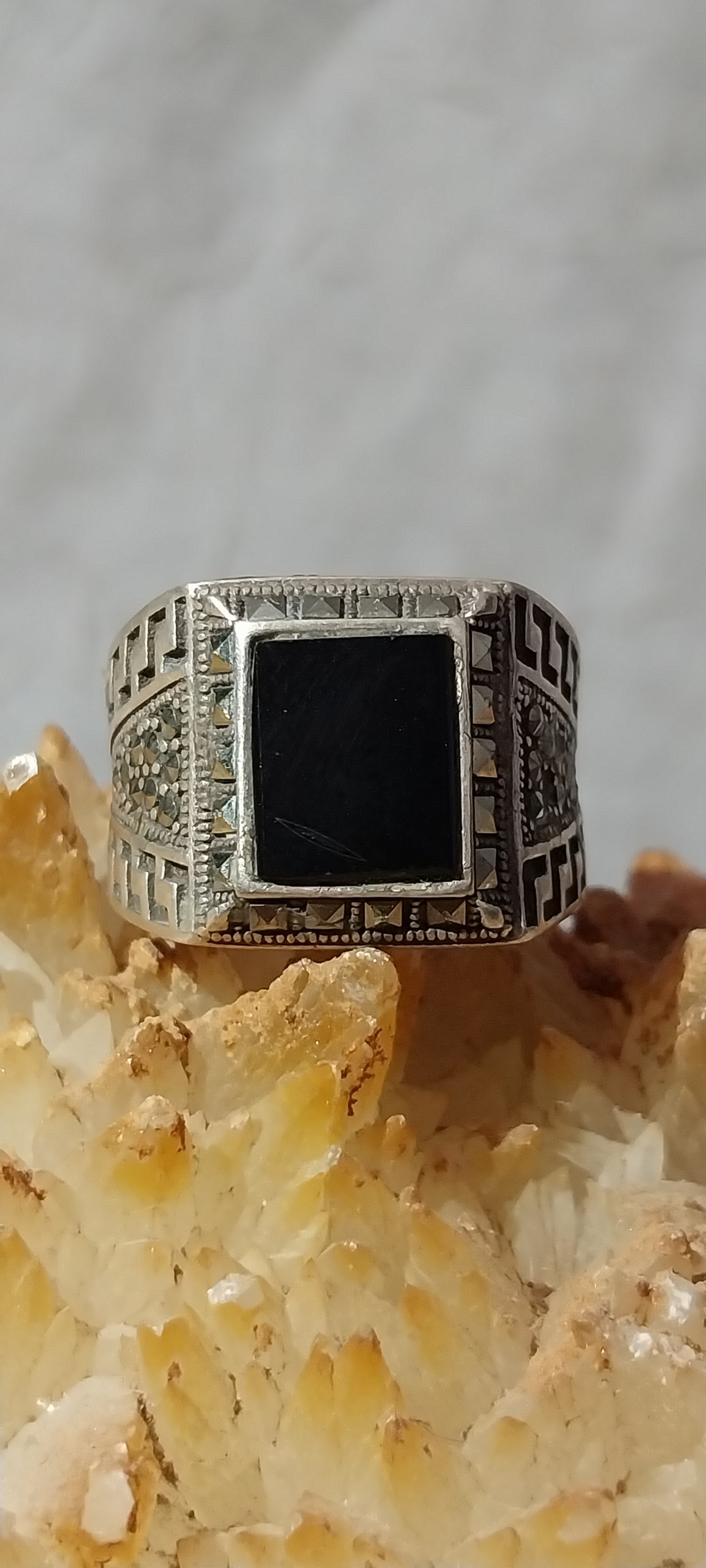 انگشتر نقره با نگین انیکس مشکی