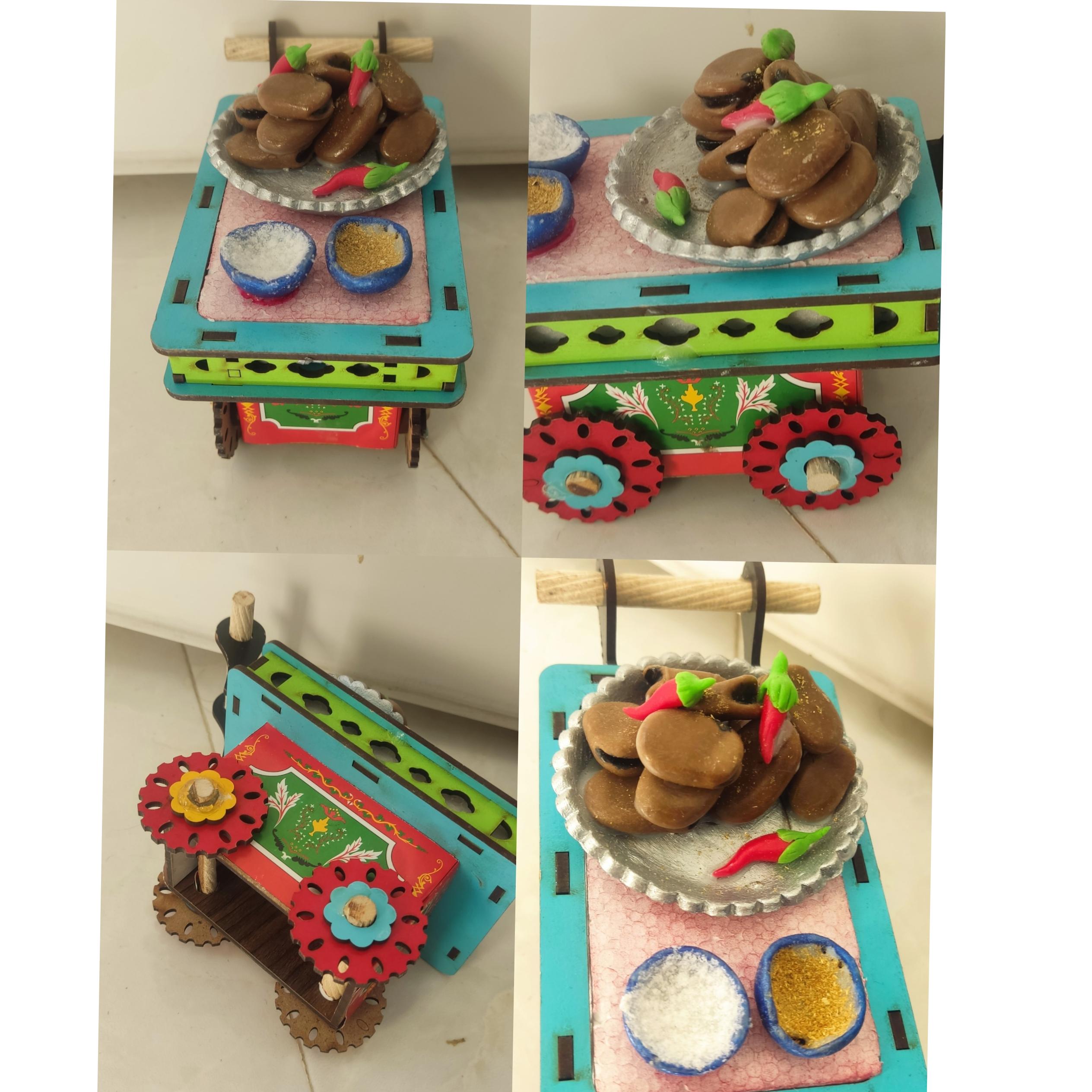 ماکت چرخ باقالی فروشی ساخته شده از چوب و برش لیزری  با ظرافت و جزییات بسیار زیبا و خوش دکور اندازه ها 8*8*12سانت