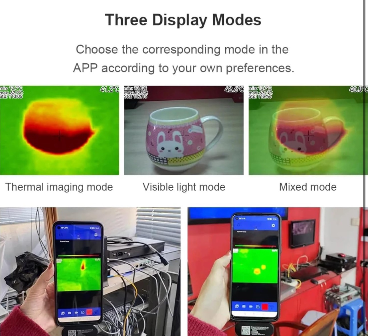 � تجزیه و تحلیل دقیق دما با دماسنج دو فلزی: دوربین حرارتی تلفن همراه وضوح 0.1 درجه سانتیگراد را ارائه میدهد و تغییرات دما را به کوچکی 0.1 درجه سانتیگراد تشخیص میدهد. تجزیه و تحلیل دقیق به شناسایی مشکلات احتمالی کمک میکند تا بتوان اقدامات پیشگیرانه را به موقع انجام داد.