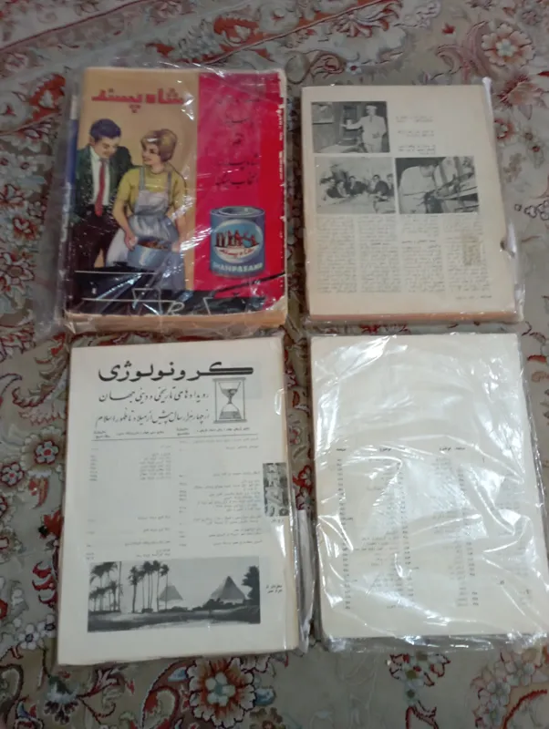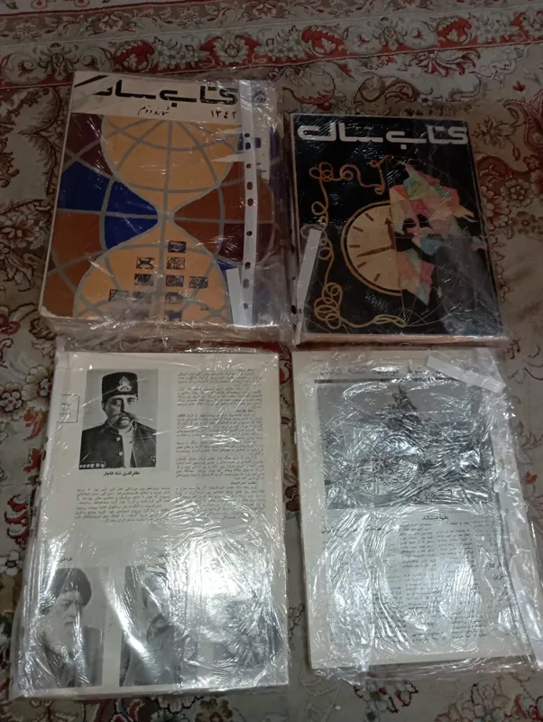 نایاب و کلا ناقص از سالهای مختلف هستند. با قطرها و صفحات کم و زیادند. مجموعا 1000 ص یا بیشترند با عکس های خوب و عالی. برای استفاده ناقصی مجلدهای قدیمی و خراب یا تحقیقات شخصی عالی هستند. تاریخشان دهه 40 هست. 4 قسمت مختلف و نامربوط هستند