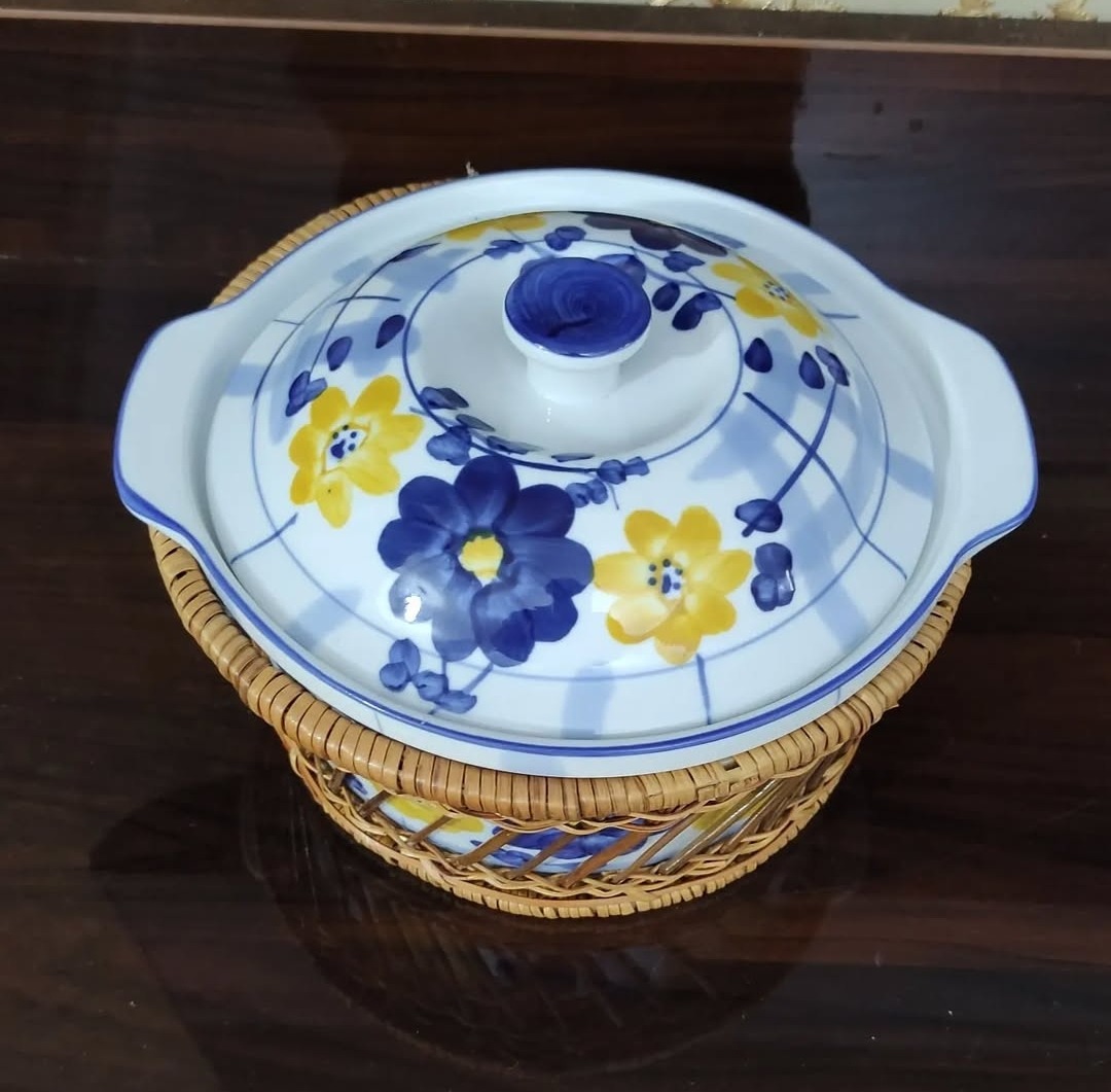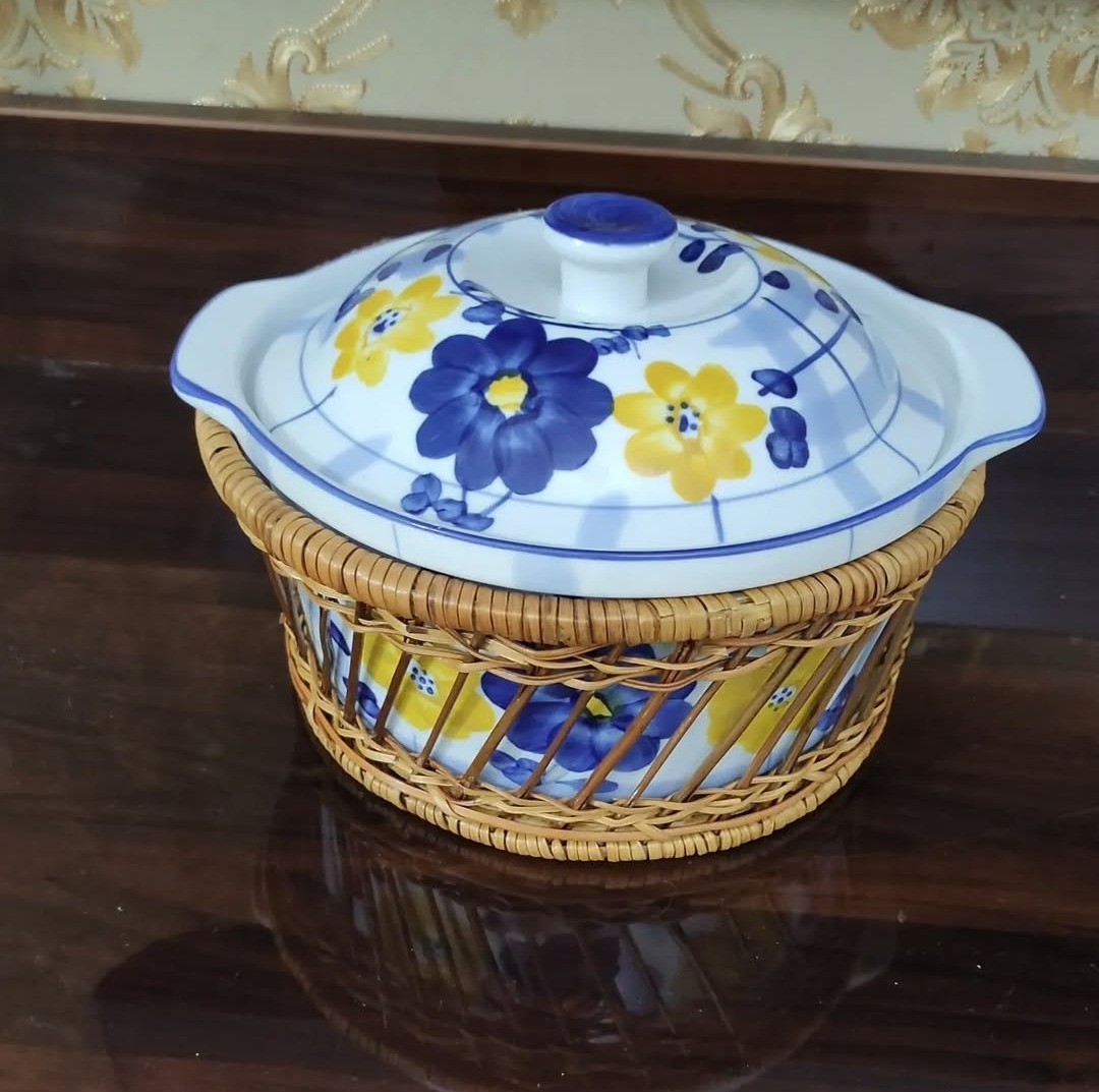قابلمه گل پنبه نونو،دارای سبد حصیری سایز20 سانت .رنگ وکیفیت عالی واصلی هستش