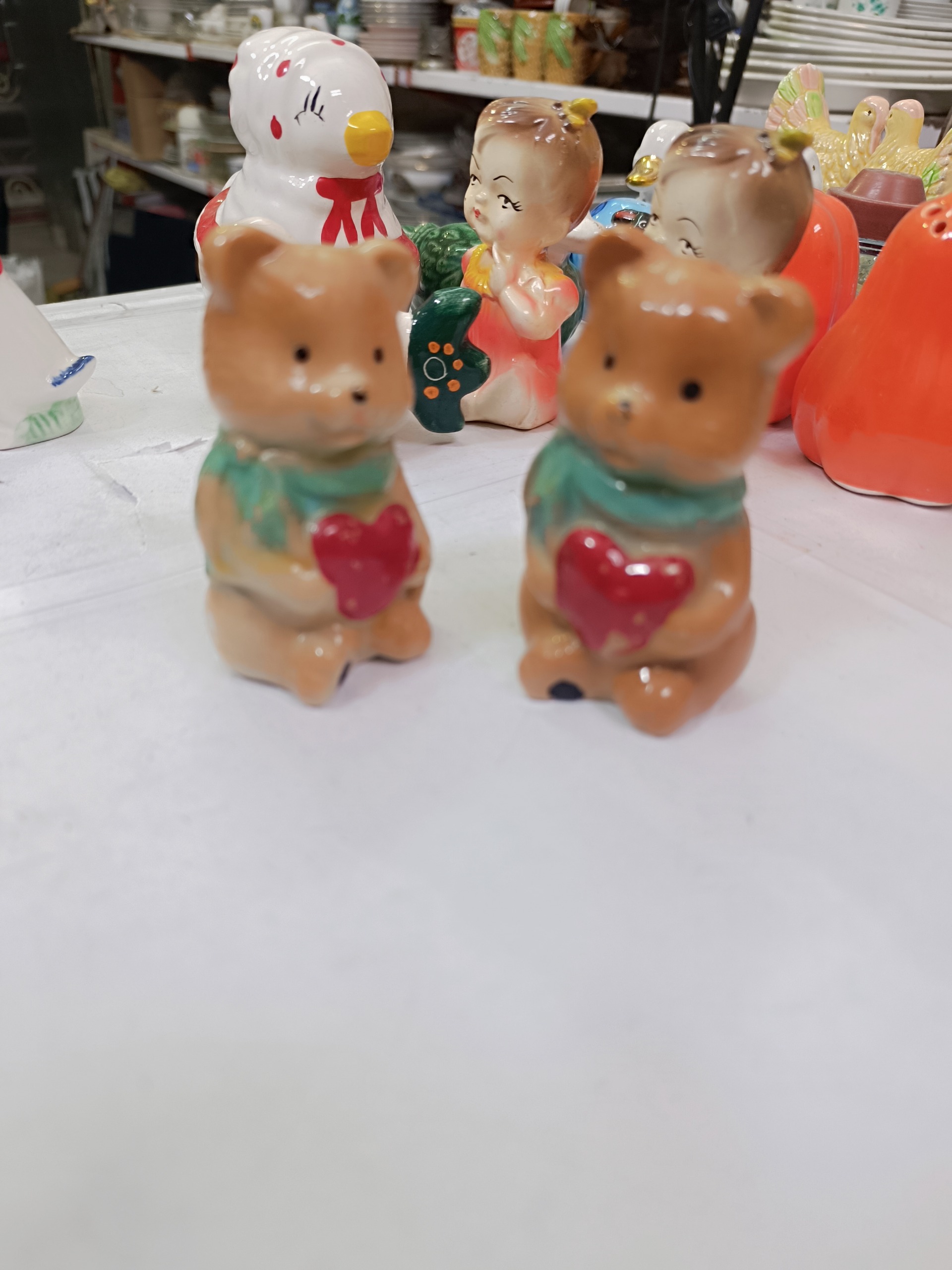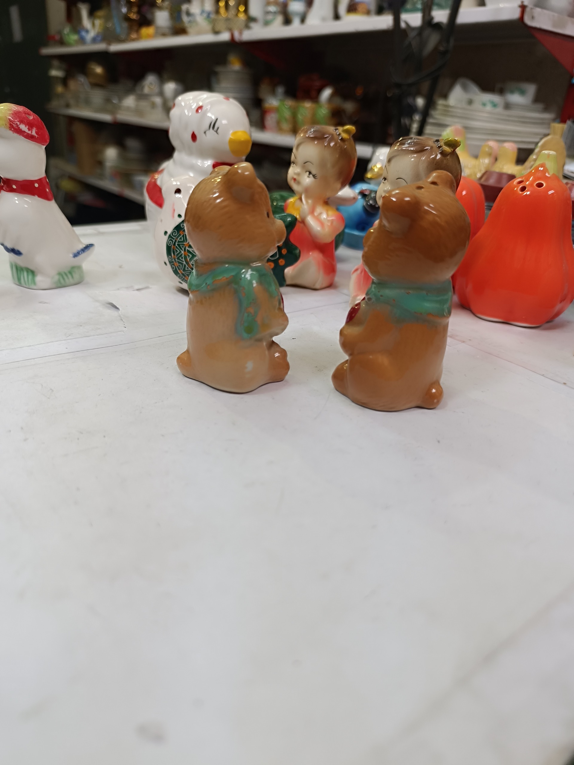 نمکدون و فلفل پاش سرامیکی قدیمی به شکل خرس ، بصورت جفتی