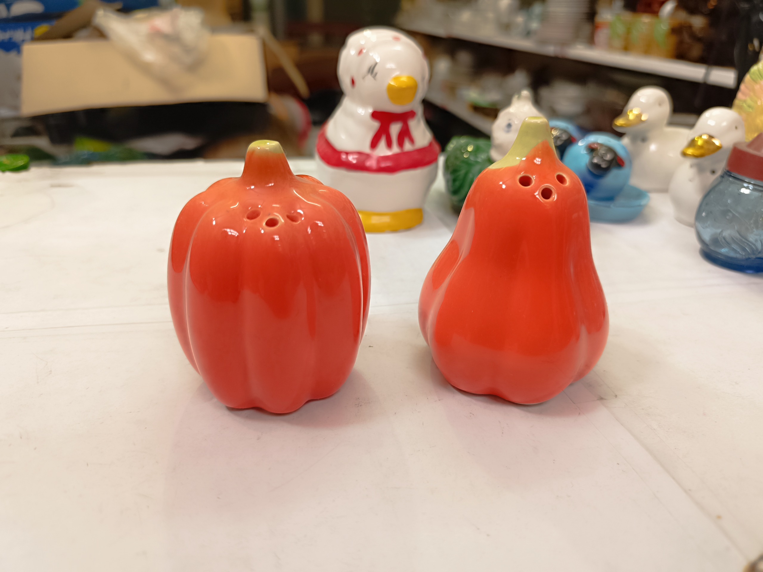 نمکدون سرامیکی قدیمی به شکل گلابی و فلفل دلمهای ، کاملا سلامت و تمیز ، فروش بصورت جفتی