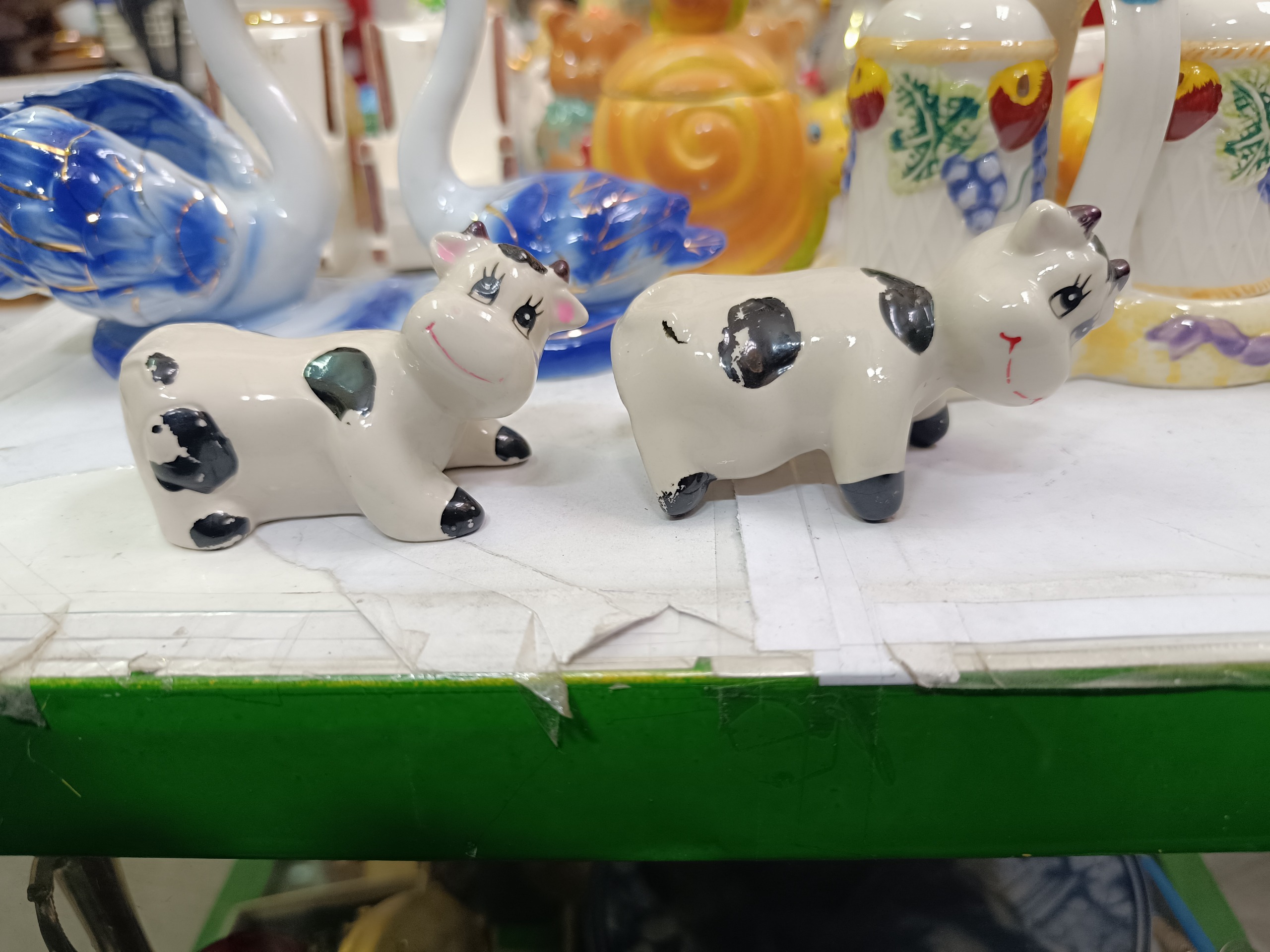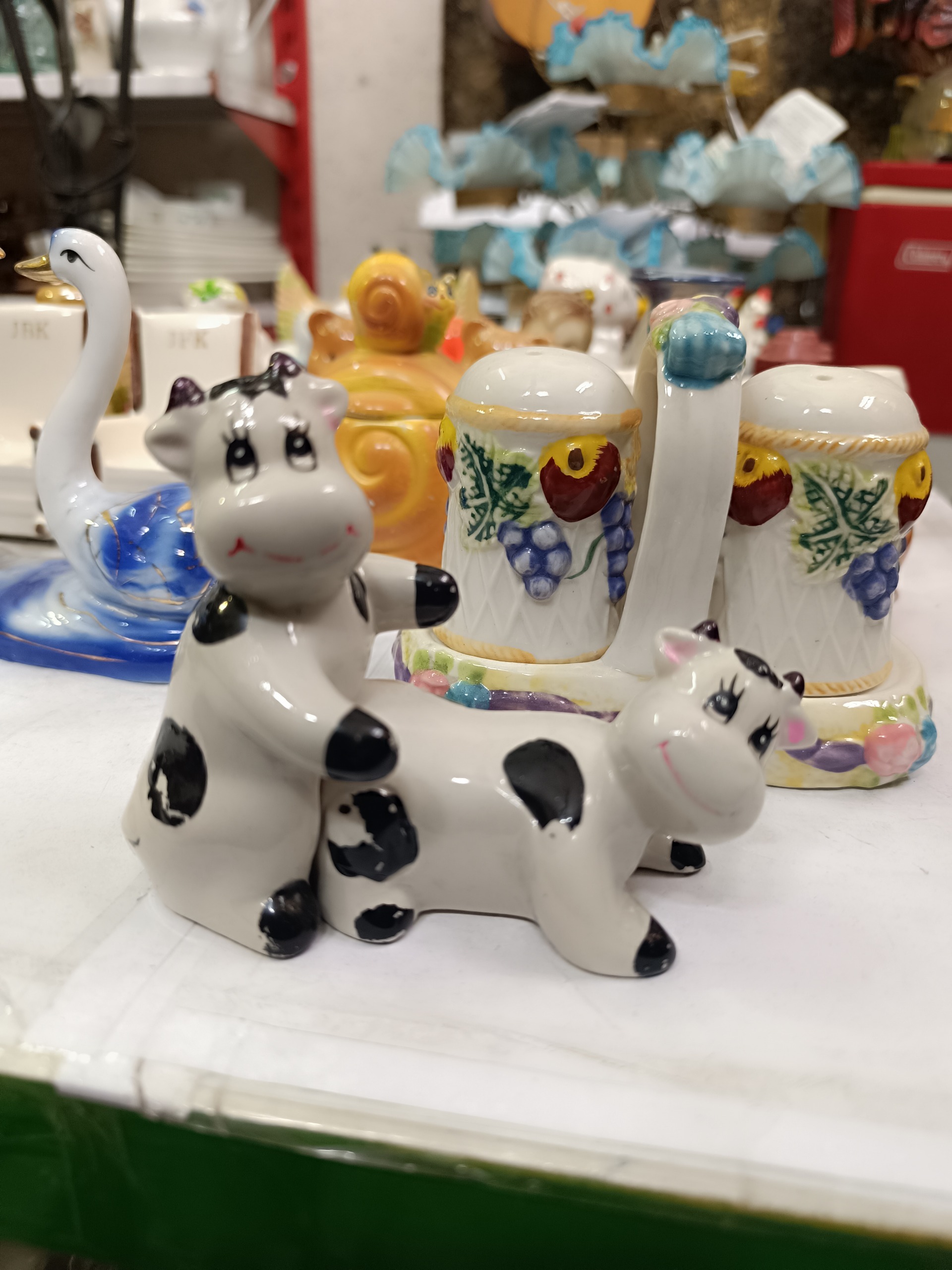 نمکدون و فلفل پاش چینی گاو ، ساخت چین ، کلکسیونی