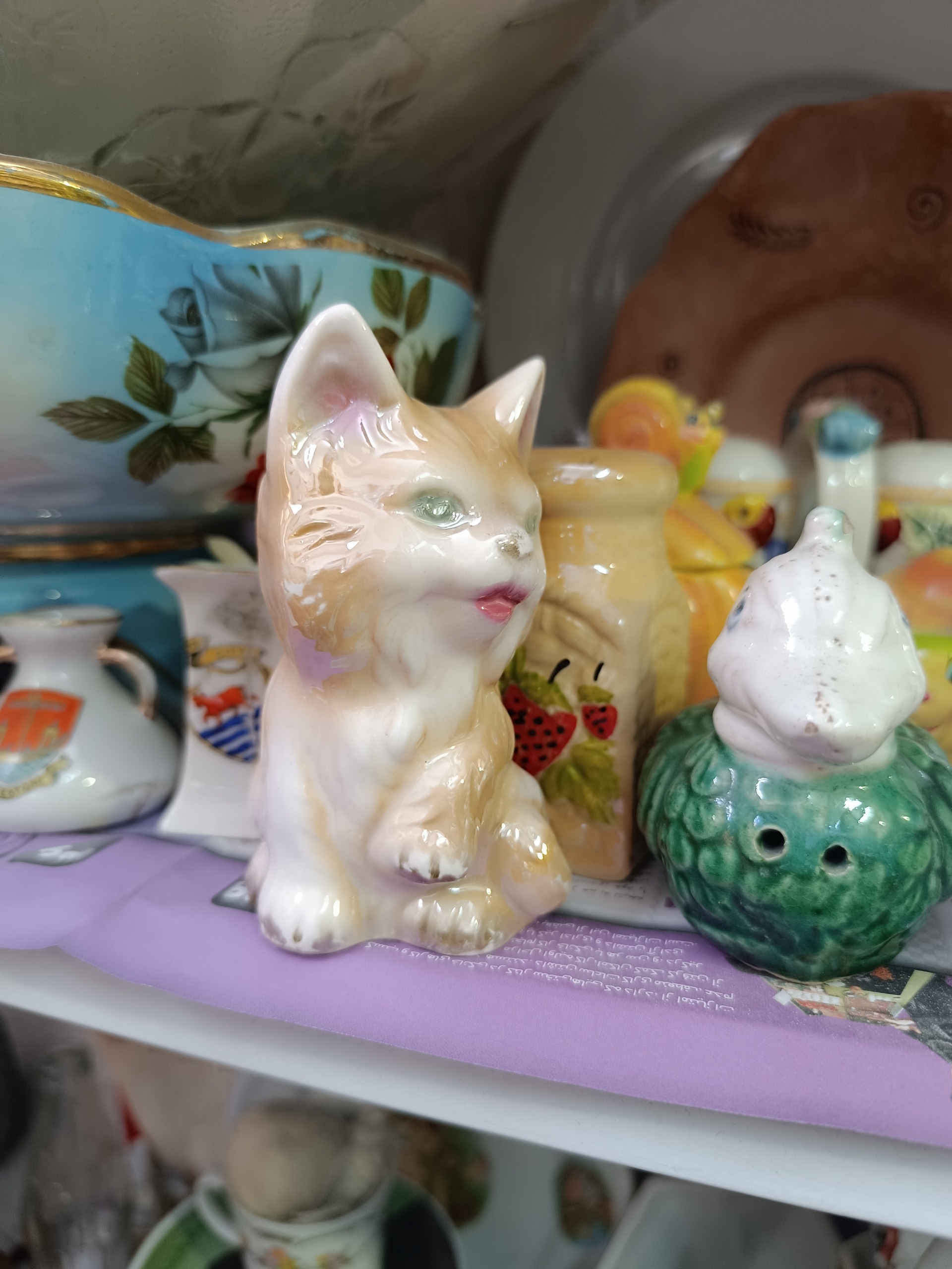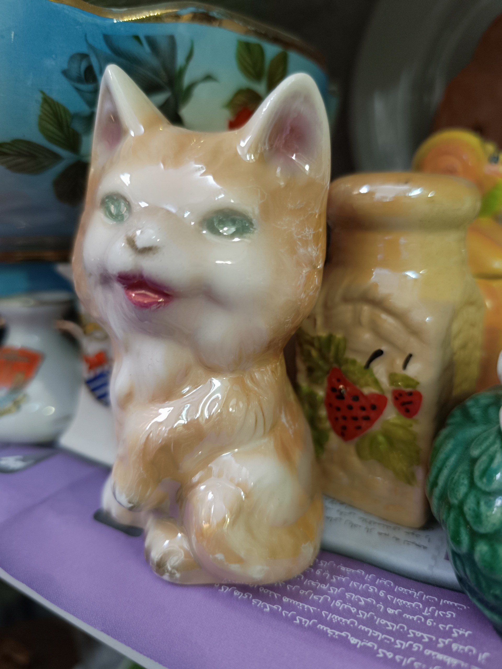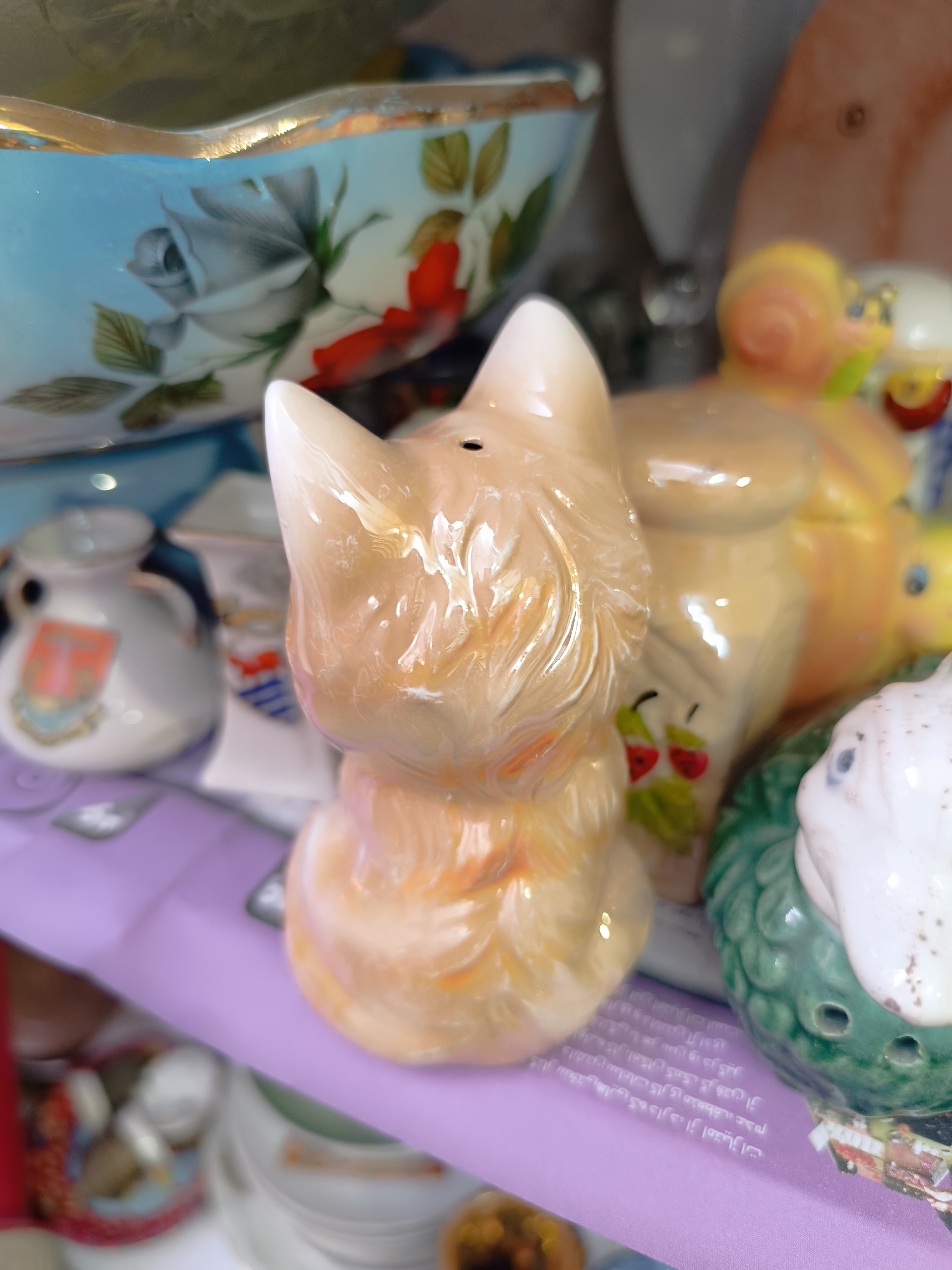 نمکدون بزرگ سرامیکی قدیمی به شکل گربه طلایی ، کاملا نو و تمیز ، فروش بصورت تکی