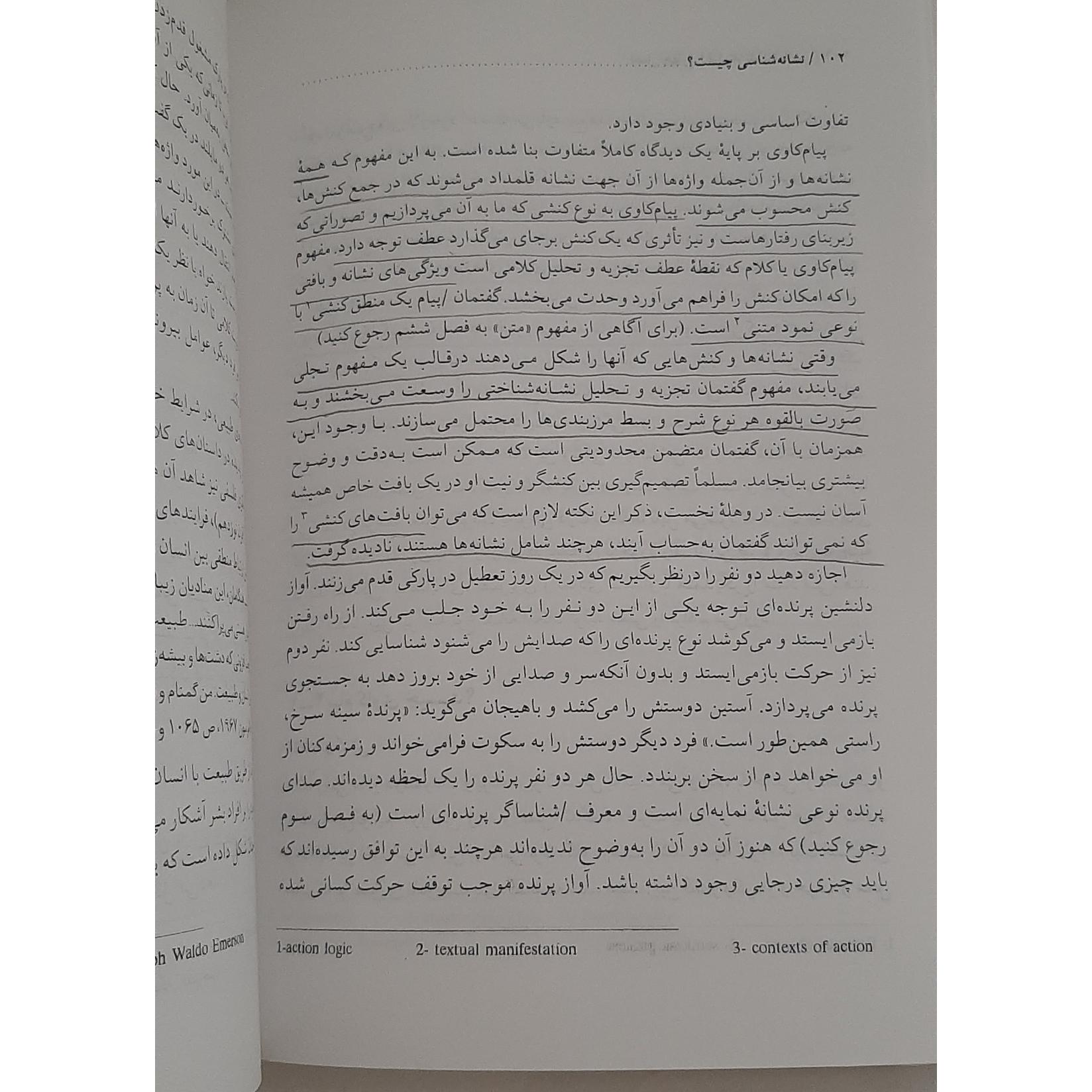 کتاب تا حد زیادی تمیزه. فقط در بعضی صفحات زیر جملات با مداد خط کشیده شده است.