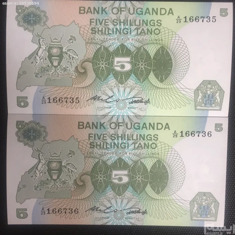 جفت اسکناس بانکی زیبا 5 شیلینگ کشور اوگاندا