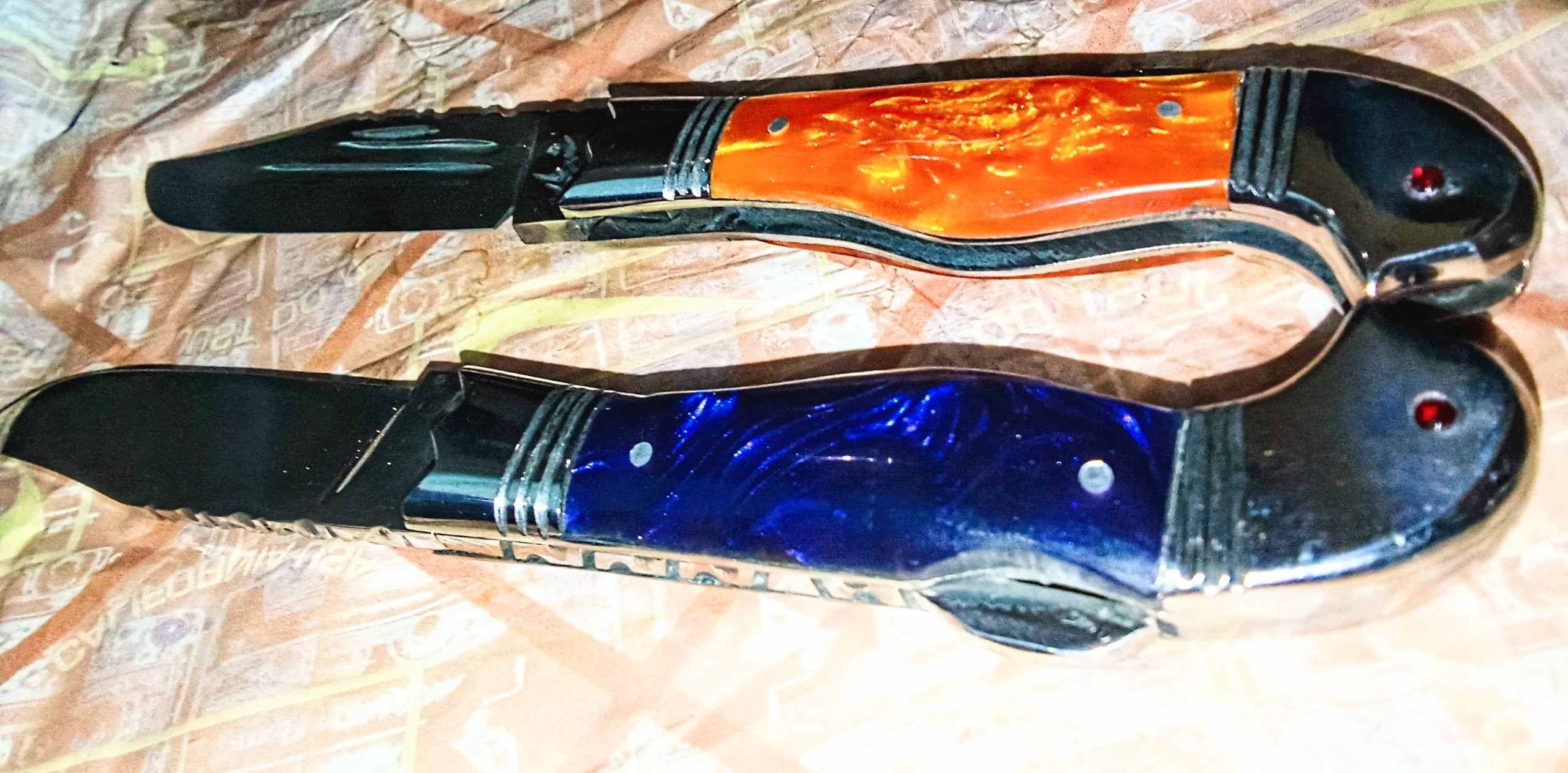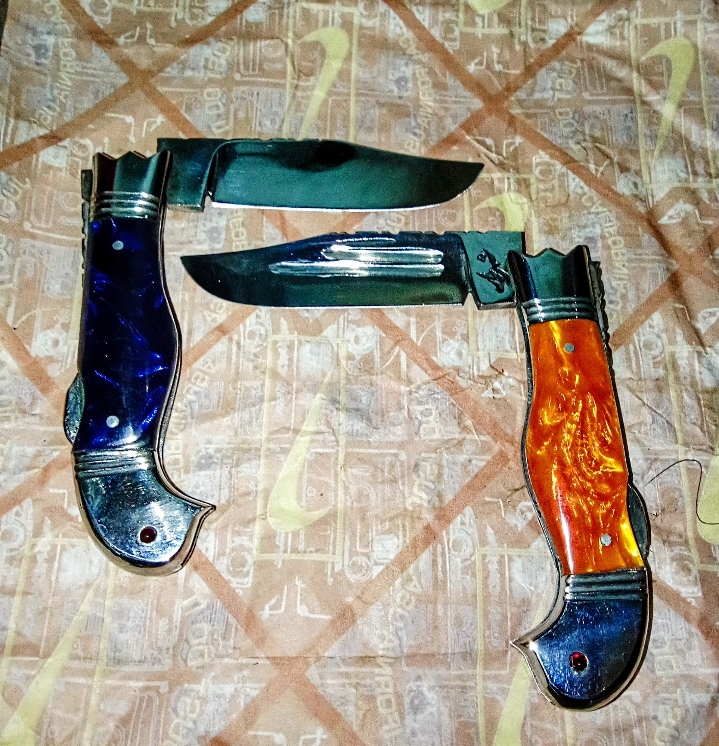 چاقوکلکسیونی ضامندار دسته اپوکسی زیبا صدفی باربند واستر استیل تیغه استیل فولاد زد زنگ وابدیده تیزوبرا بدون لغی کیپ فنر قوی وپرناب تیغه موقع بازوبست شلاقی سایز درحالت بازواقو 18سانت ضامن روان ومحکم درچندرنگ متنوع