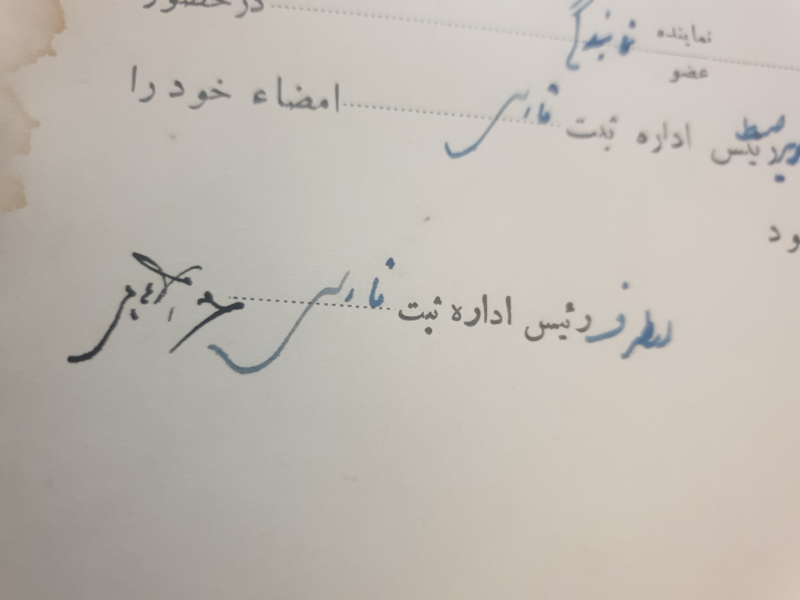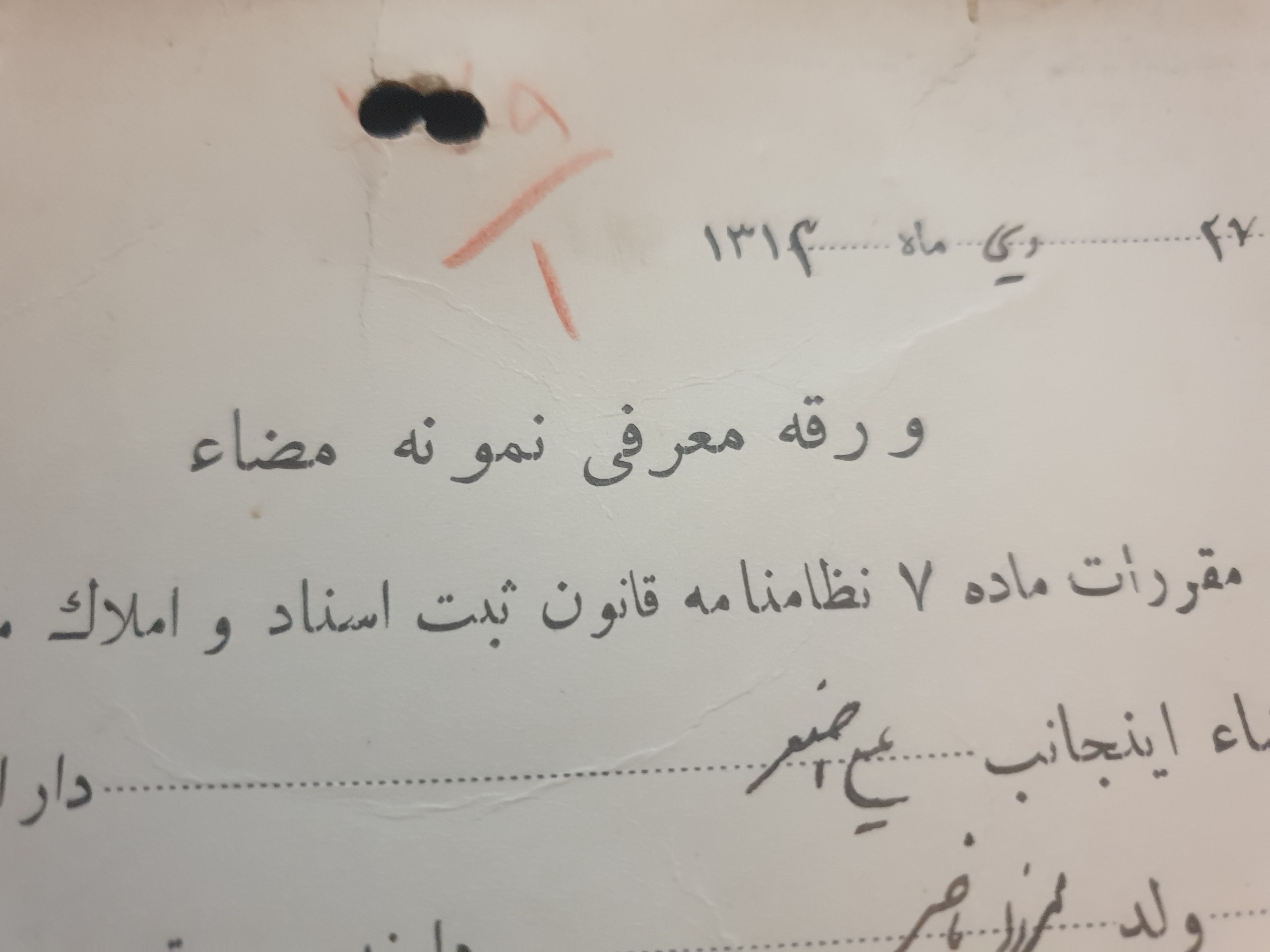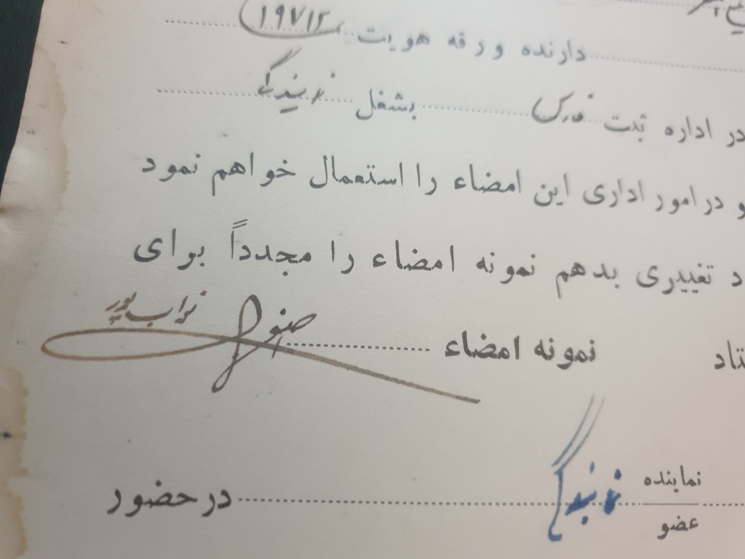 ورقه معرفی نمونه امضا رضاشاهی 1313 شمسی