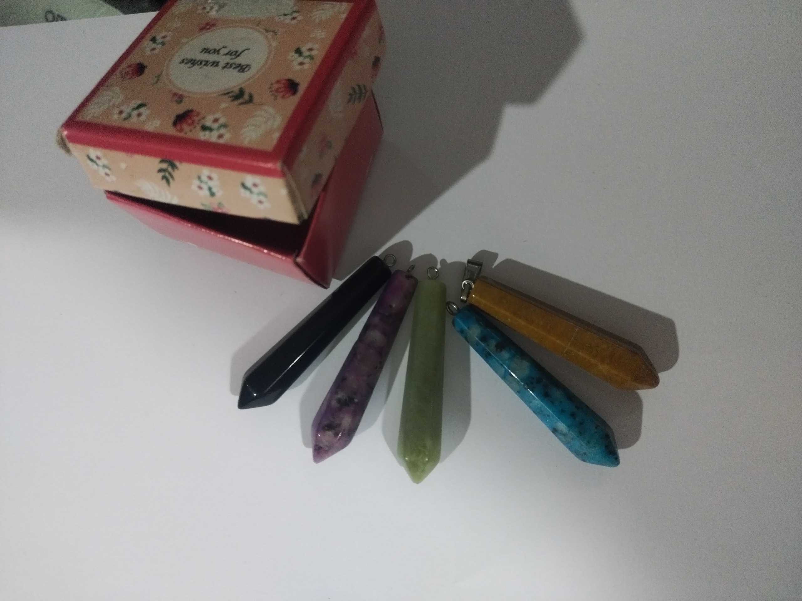 سنگ های اصل پک 5 عددی شامل سنگ آمیتیس، اونیکس، زبرجد، جاسپر یشم همراه با گیره آویز گردنی