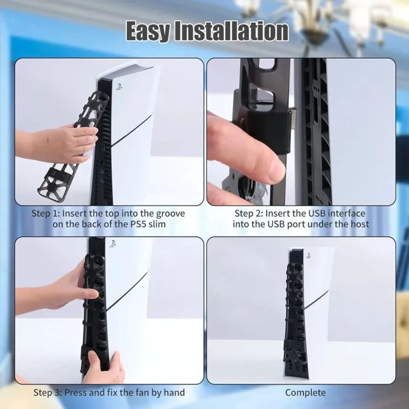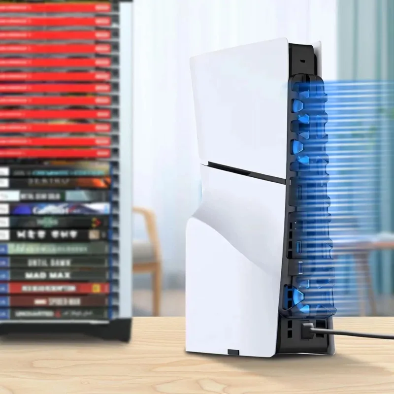 فن خنک کننده Dobe مدل TP5-3538 برای PS5 مناسب برای انواع پلی استیشن 5 اسلیم چه Standard و چه Digital می باشد. این فن خنک کننده دارای سه فن می باشد که کمک می کند دمای کنسول PS5 کاهش پیدا کند. همچنین این فن خنک کننده طوری طراحی شده است که می توان به عنوان نگهدارنده هدست هم استفاده کرد