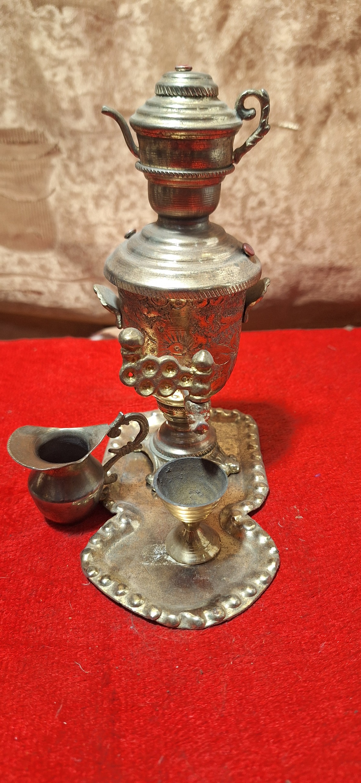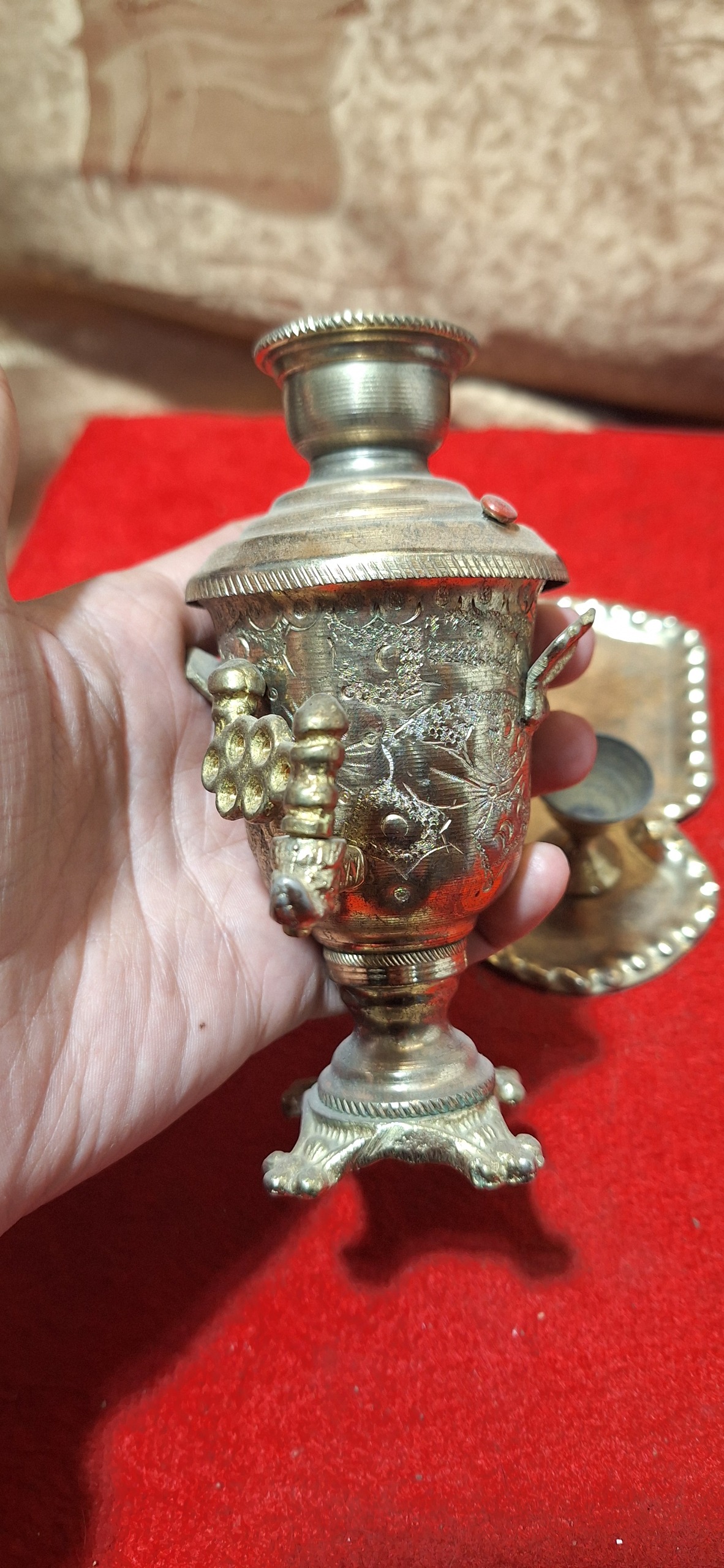 سماورکوره دار سیسمونی کوچولو کهنه باسرویس تمام برنجی