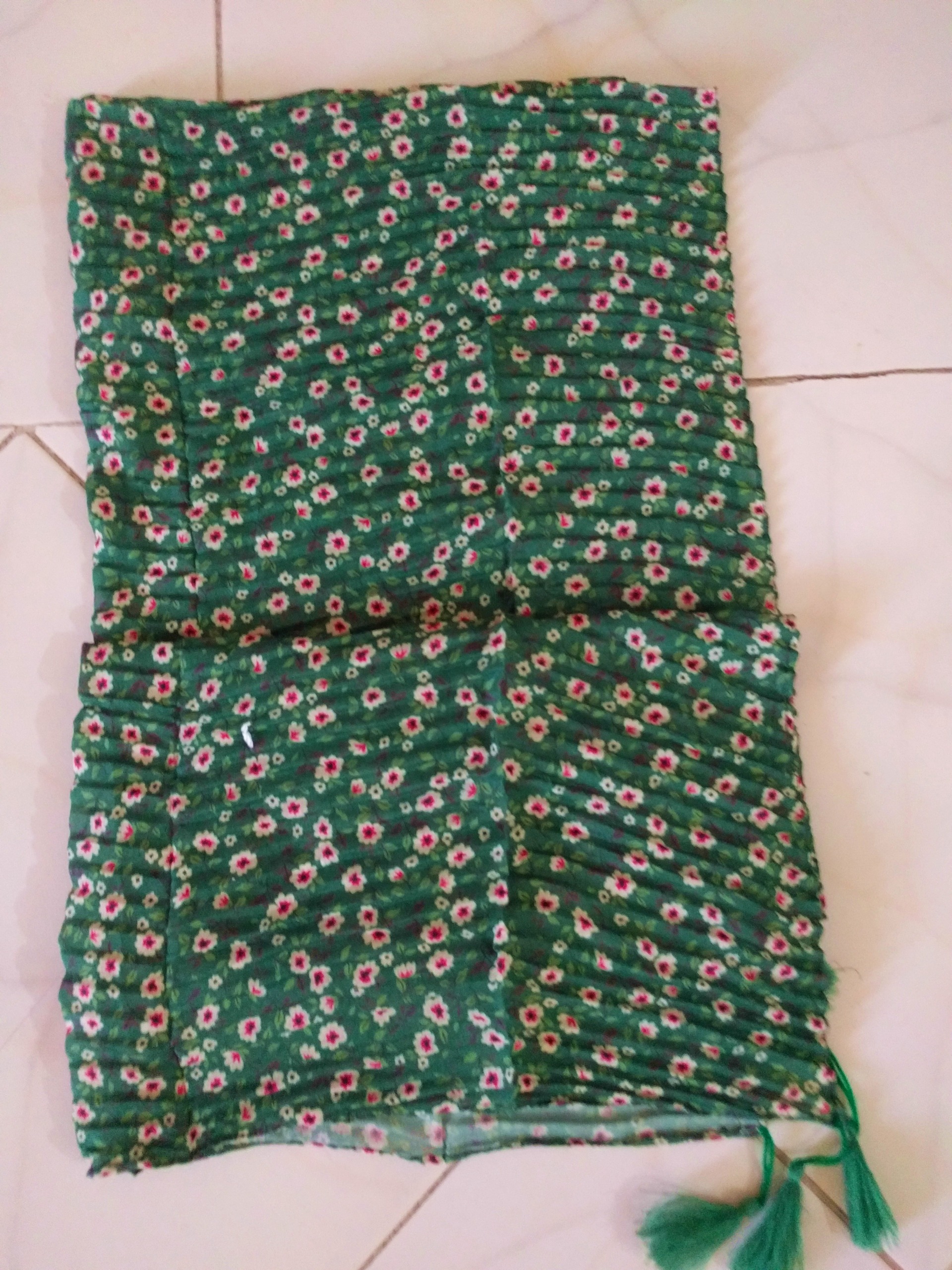 شال نخی پلیسه سبز گل ریز منگوله دار